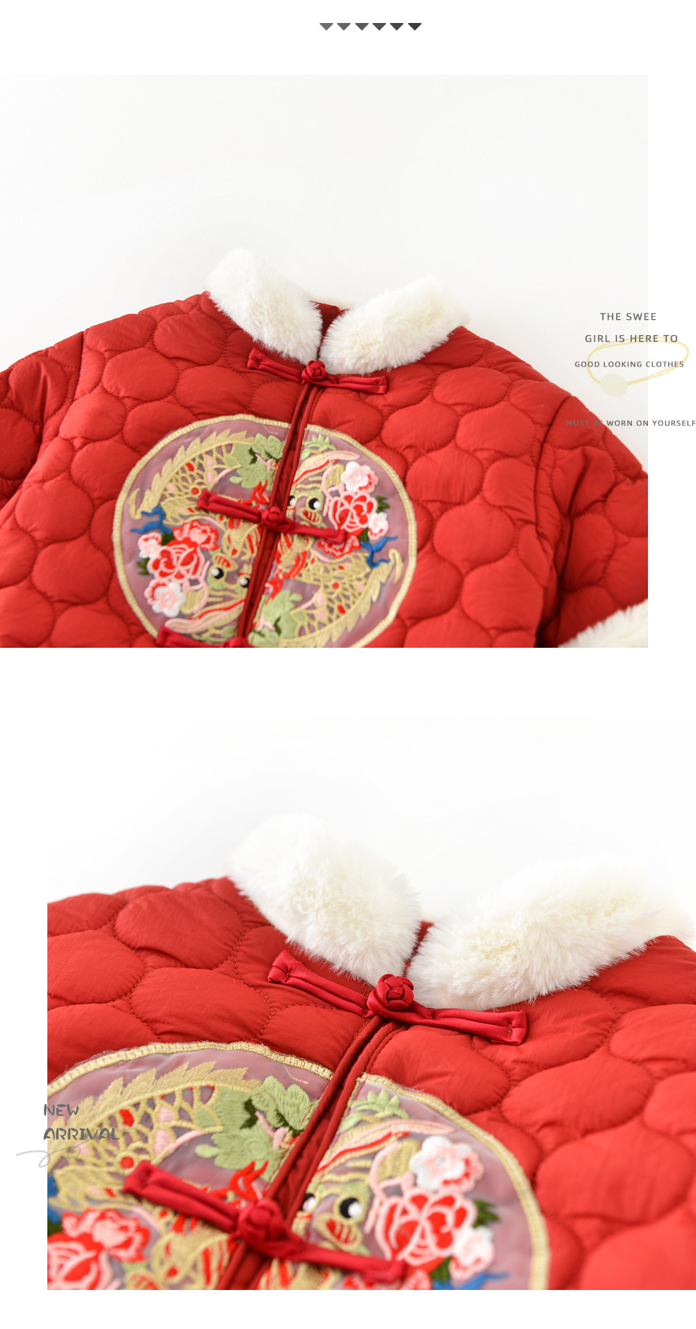 2024 년 새해 방풍 따뜻한 어린이 연차복 버클과 모피 95771 어린 아이들의 중국 스타일 코트