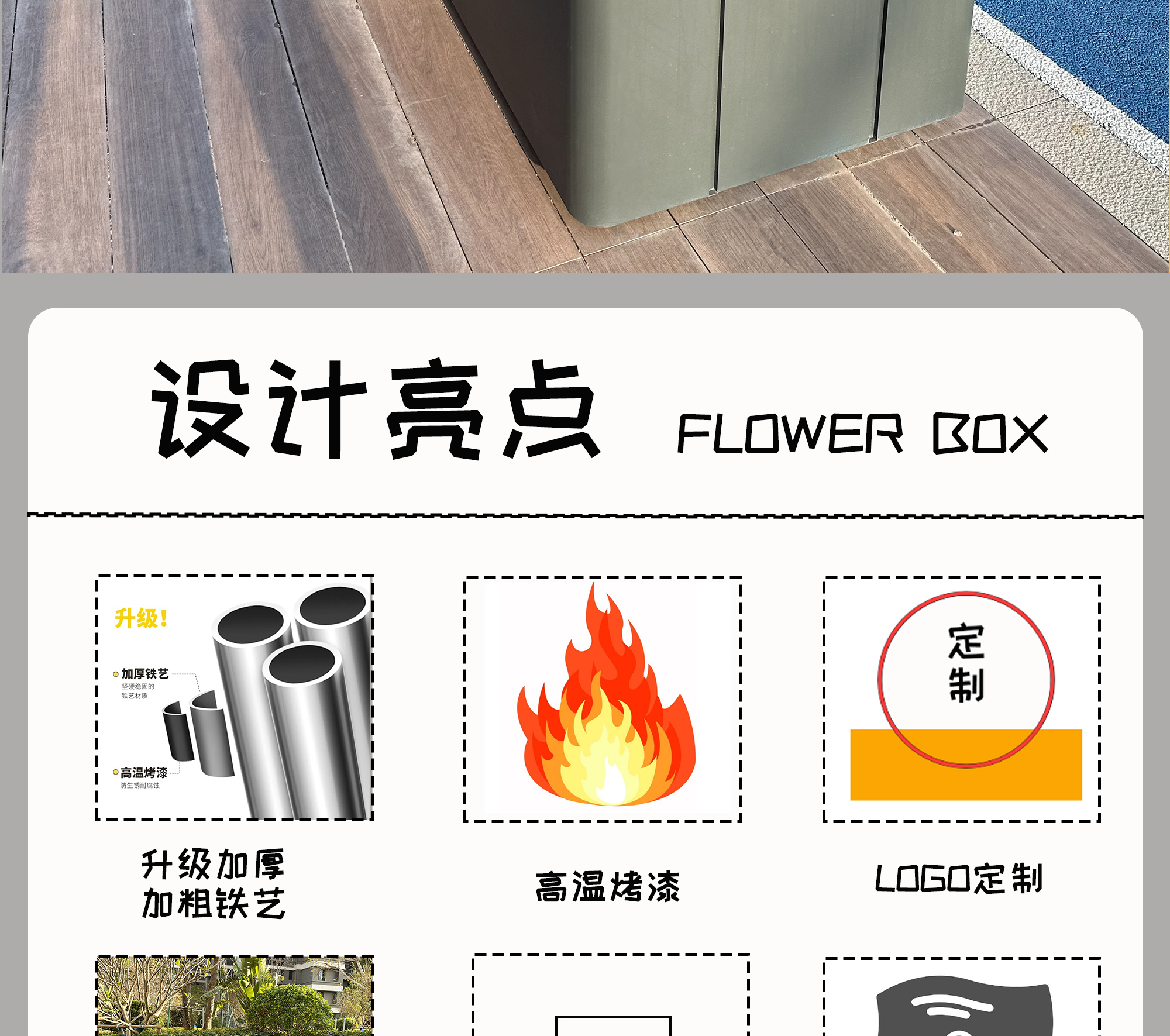 • 스툴 플라워 박스 길이 160_폭 65_높이 65 아연 도금 강철 + 플라스틱 목재