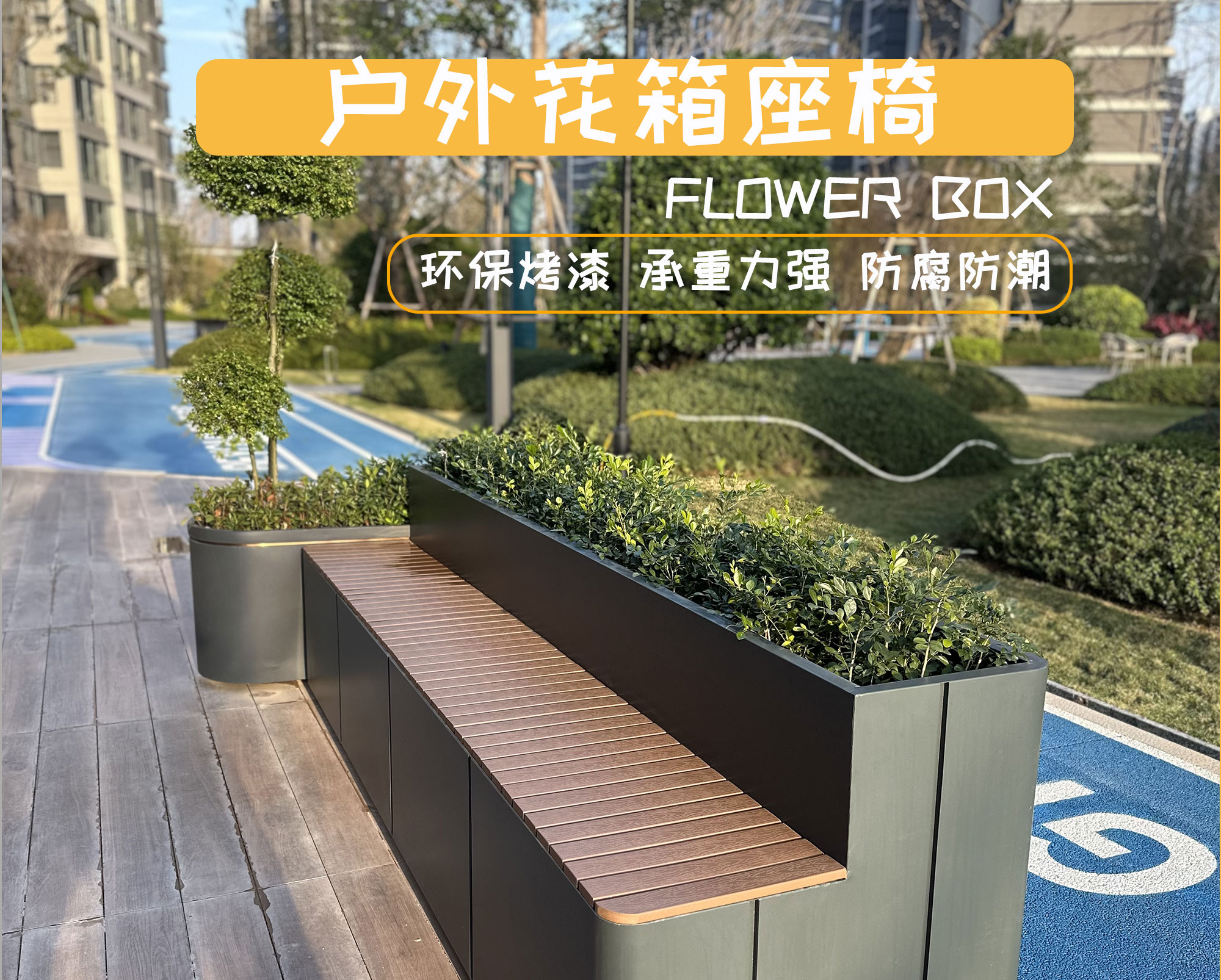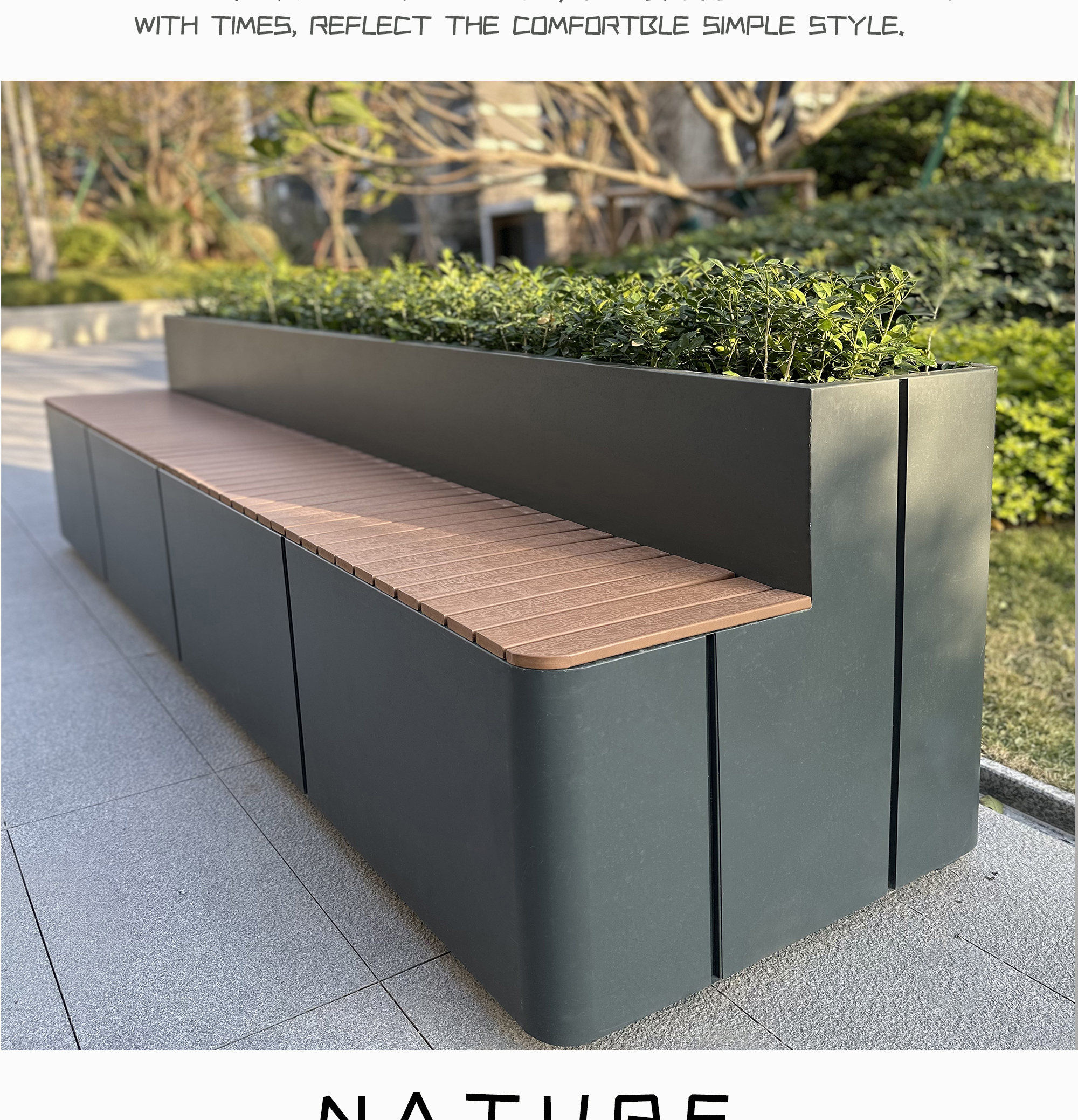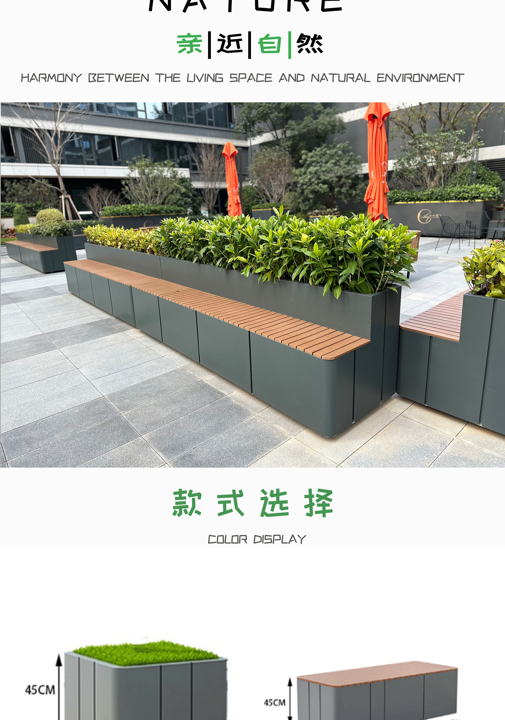 야외 좌석 꽃 상자 조합 정원 풍경 플라스틱 나무 앉아 의자 창조적 인 쇼핑몰 공공 휴식 대기 의자