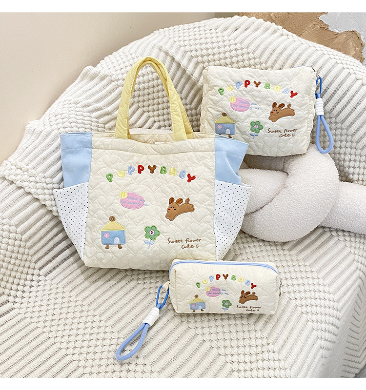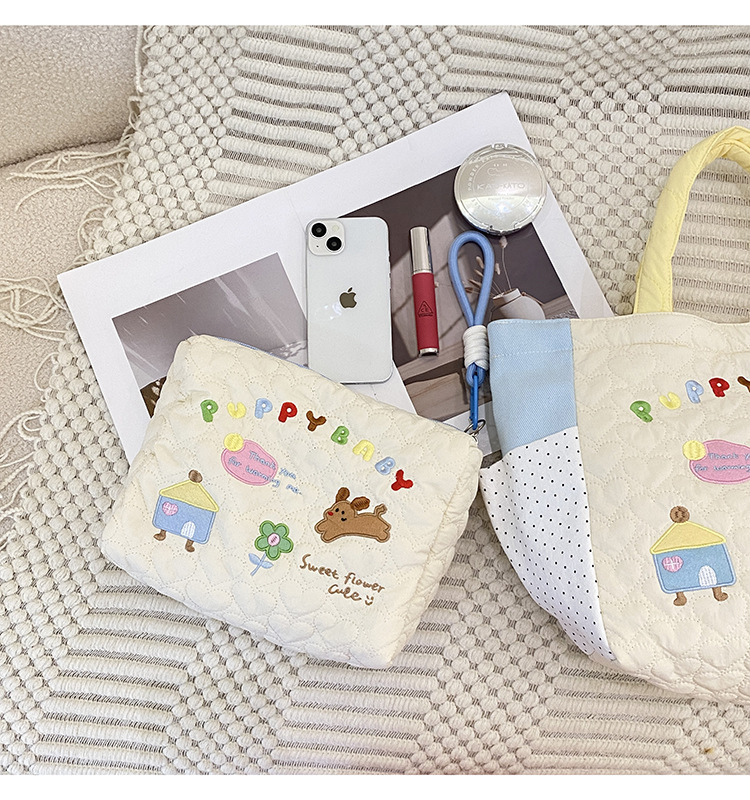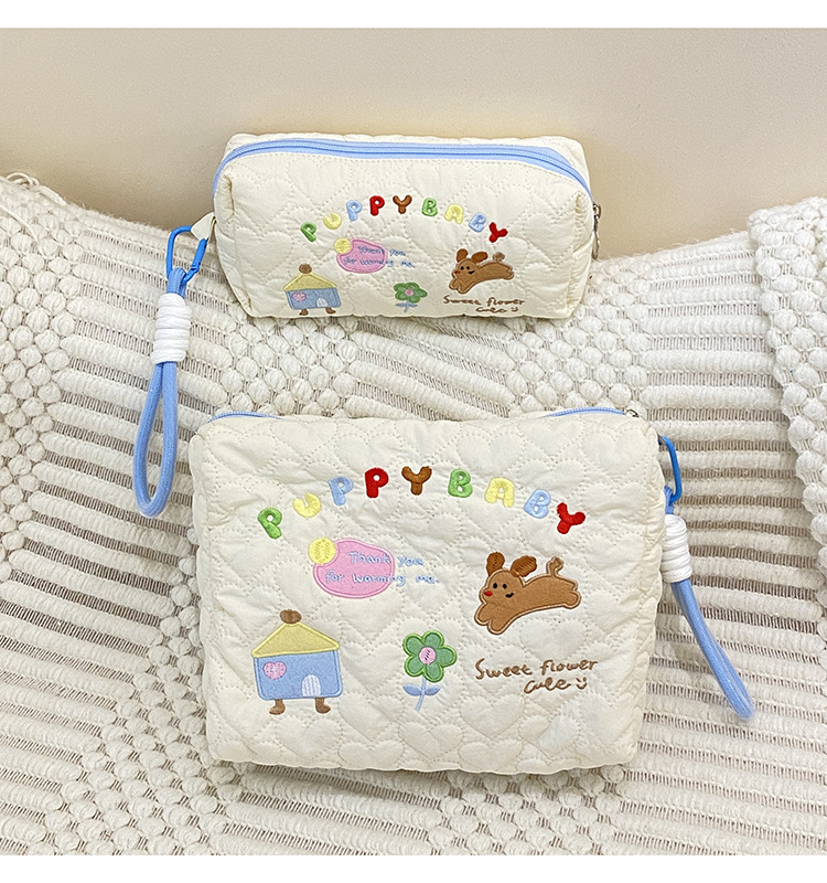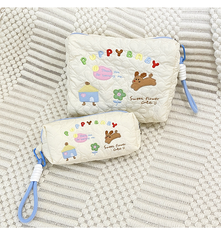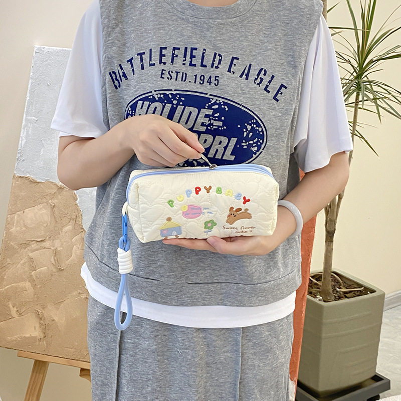 새로운 귀여운 그림 자수 보관 가방 간단한 휴대용 화장품 가방 대용량 휴대용 학생 문구 연필 가방