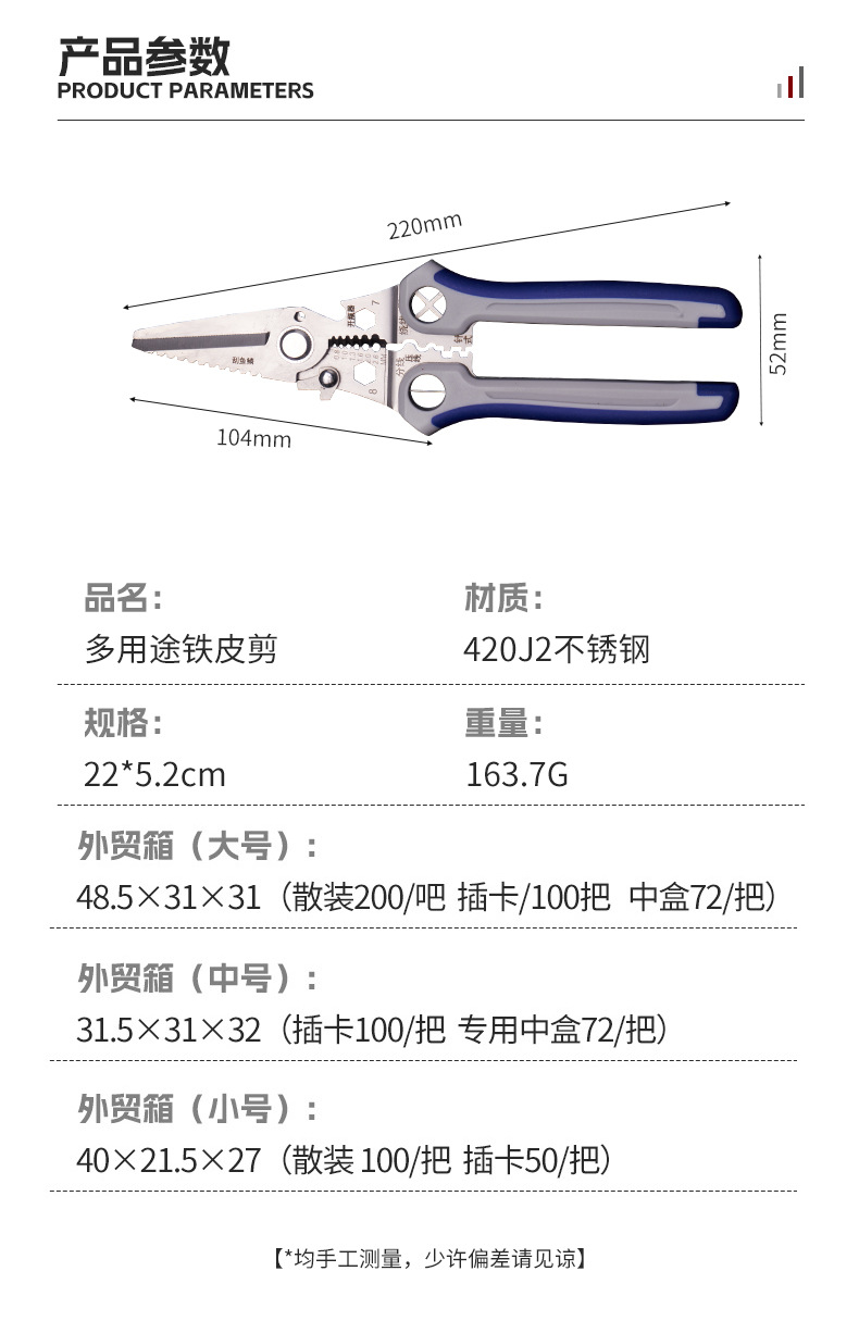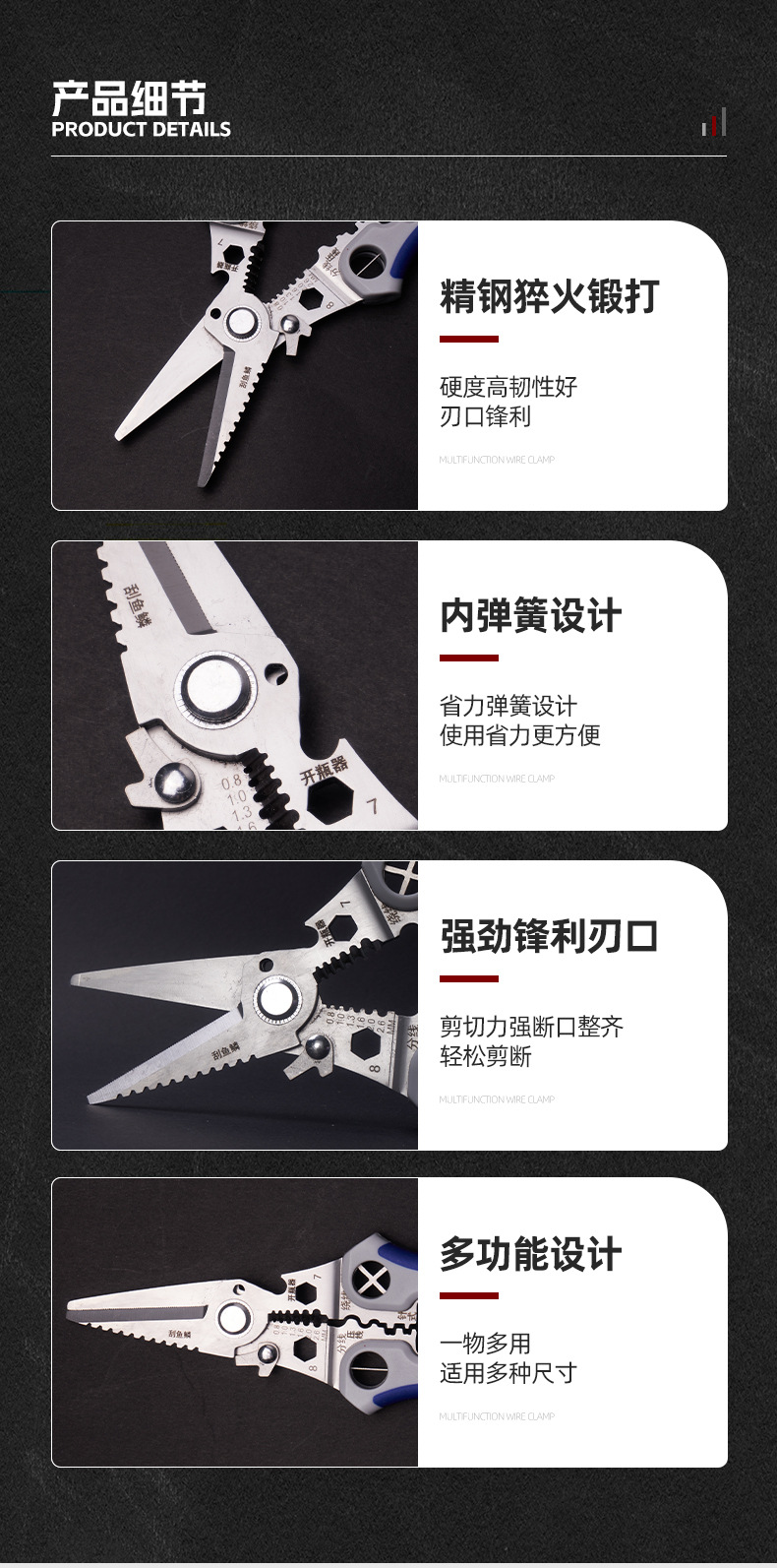 스트레이트 헤드 철판 가위, 와이어 스트리핑, 못 끊기 및 나사 조이기, 다기능 철판 가위, 산업용 등급 스테인레스 스틸 와이어 스트리퍼