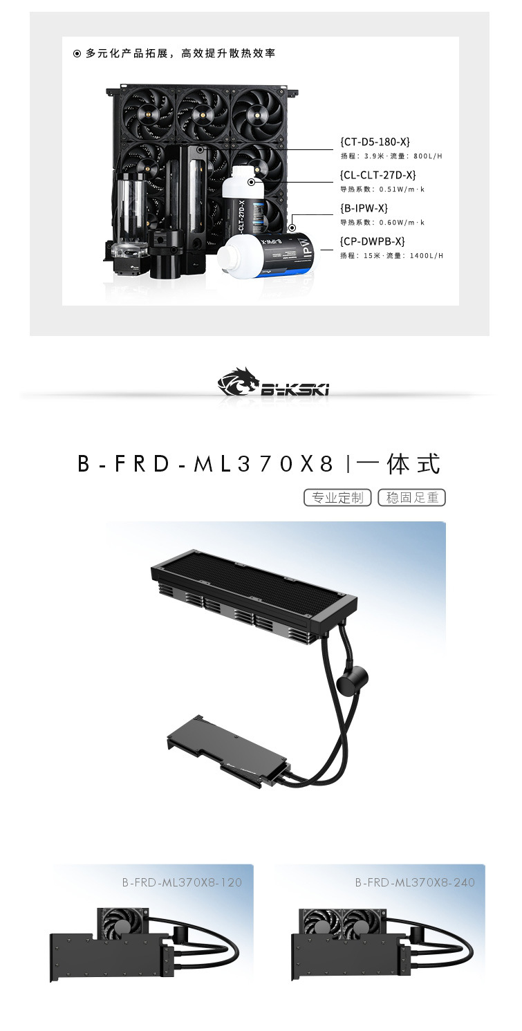 Bykski B- FRD-ML370X8 그래픽 카드 통합 수냉식 Cambrian MLU370-X8