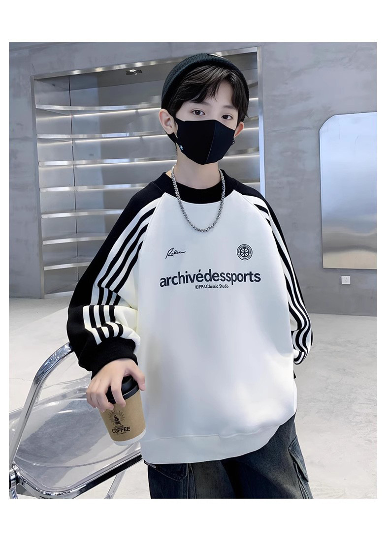 도매 가을 어린이 패션 편지 느슨한 캐주얼 스웨터 2024 소년 패션 잘 생긴 바 긴 소매 탑스토어 가기