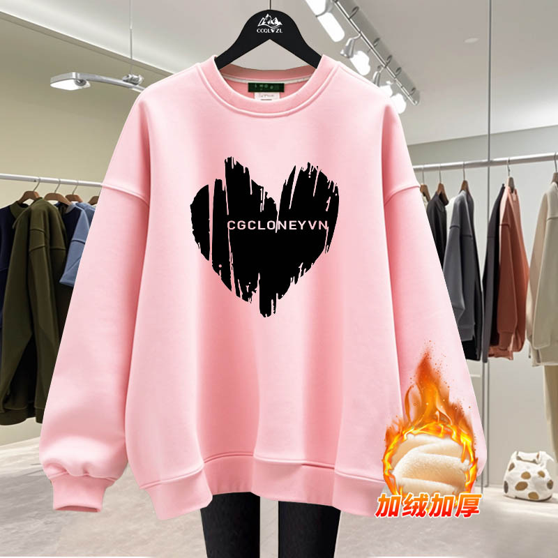 가을과 겨울 2024 새로운 패션 브랜드 유행 남녀 같은 하이 스트리트 탑 기모 두꺼운 라운드 넥 스웨트 셔츠