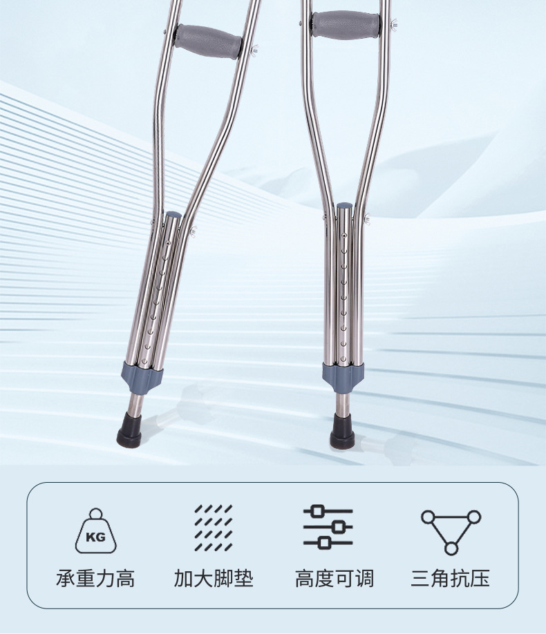 목발 스테인레스 스틸 목발 겨드랑이 이중 목발 골절 장애인 노인 목발 조절 텔레스코픽 두꺼운 목발 도매