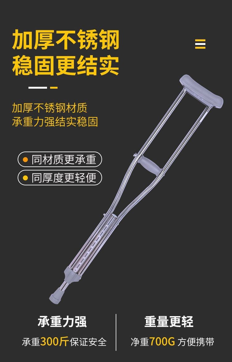 목발 스테인레스 스틸 목발 겨드랑이 이중 목발 골절 장애인 노인 목발 조절 텔레스코픽 두꺼운 목발 도매스토어 가기