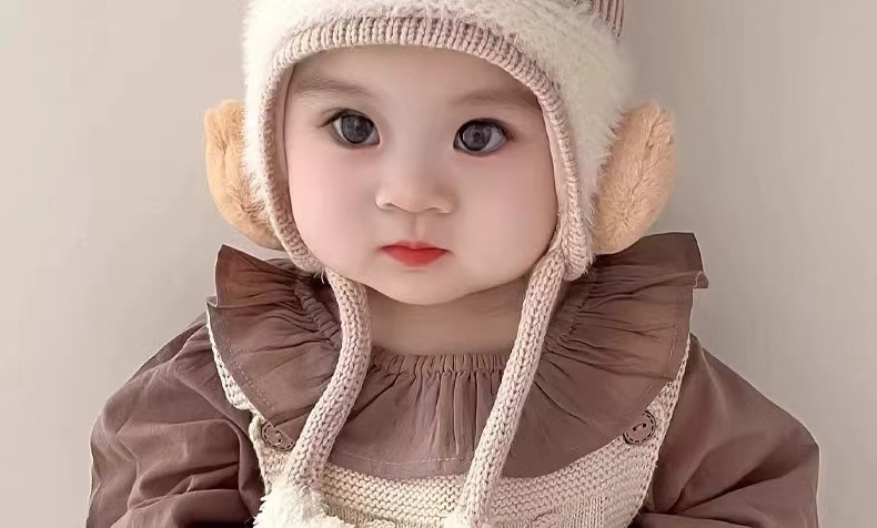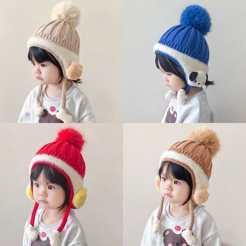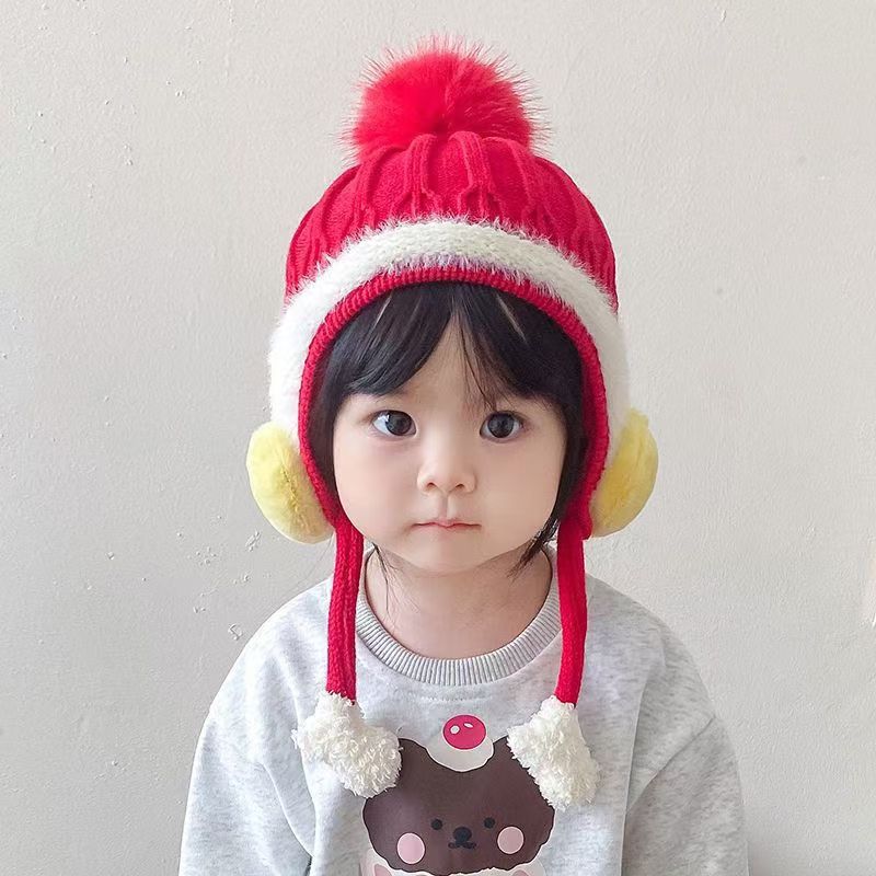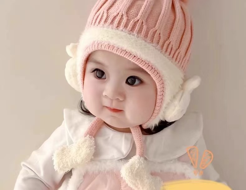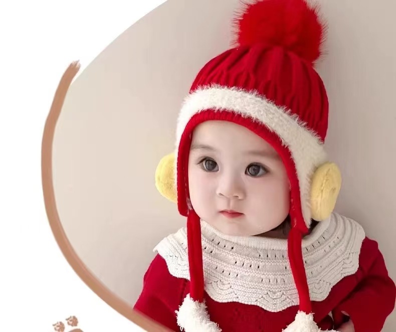 아기 모자 가을과 겨울 어린이 울 모자 소년과 소녀 유아 귀여운 따뜻한 니트 모자 두꺼운 귀 보호