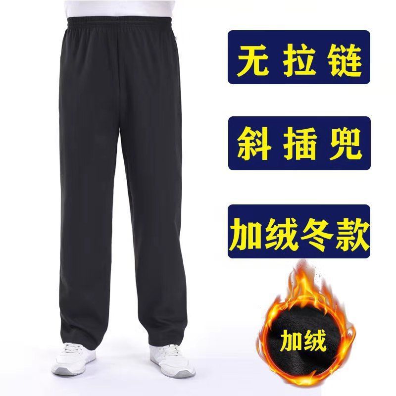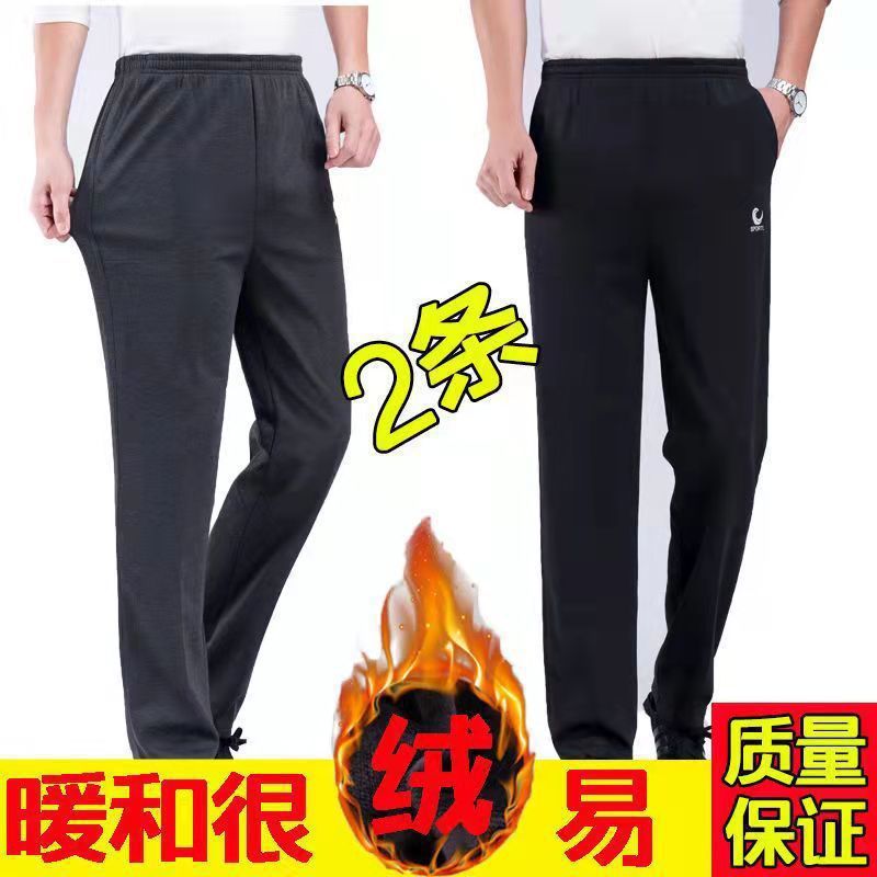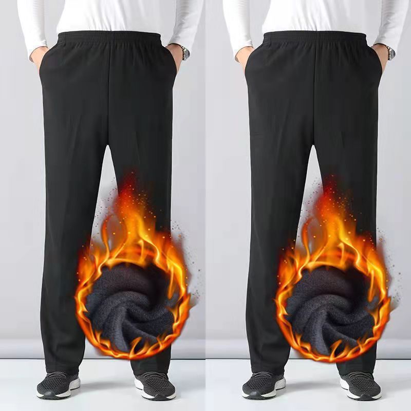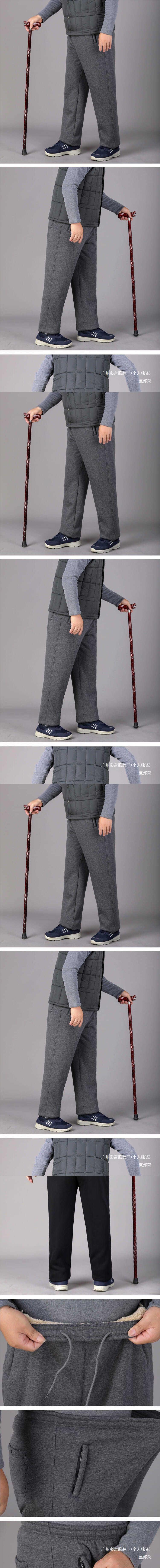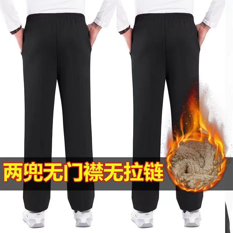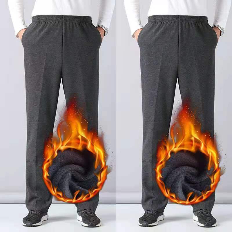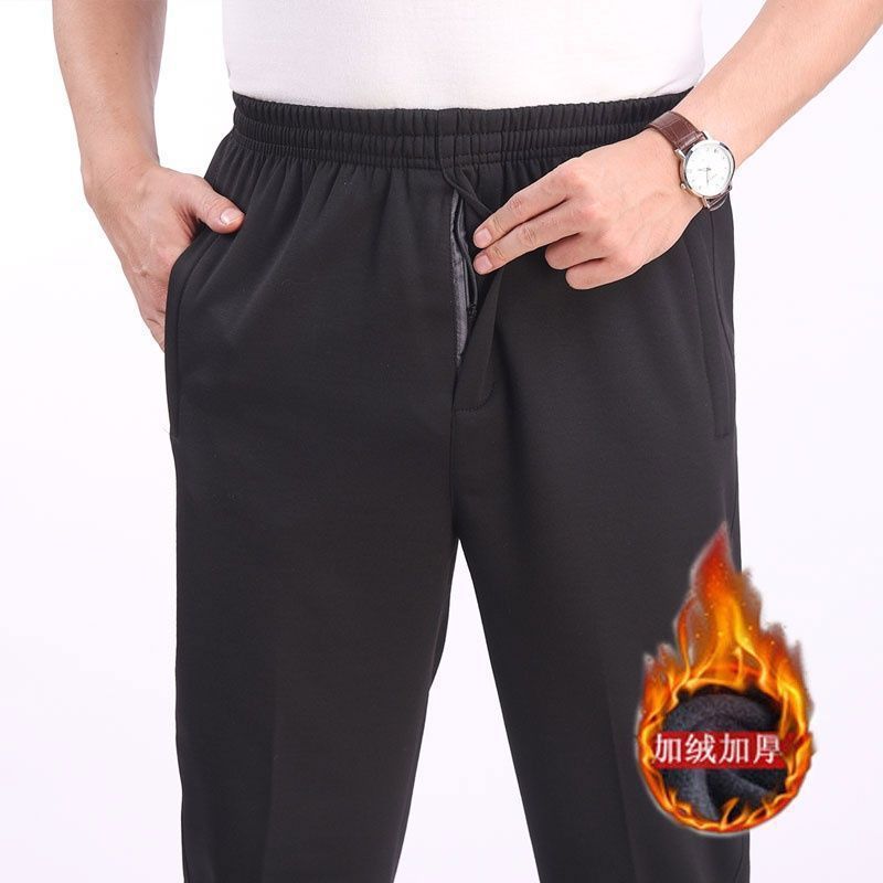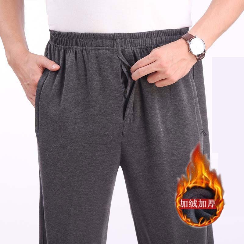 중년 및 노인을위한 Dishan 복장 기모 캐주얼 바지 남자 느슨한 허리 겨울 할아버지 아빠 노인 리다를위한 넓은 두꺼운 면 바지