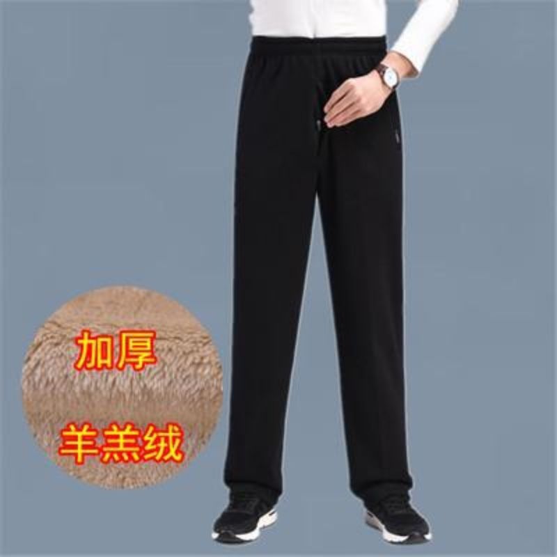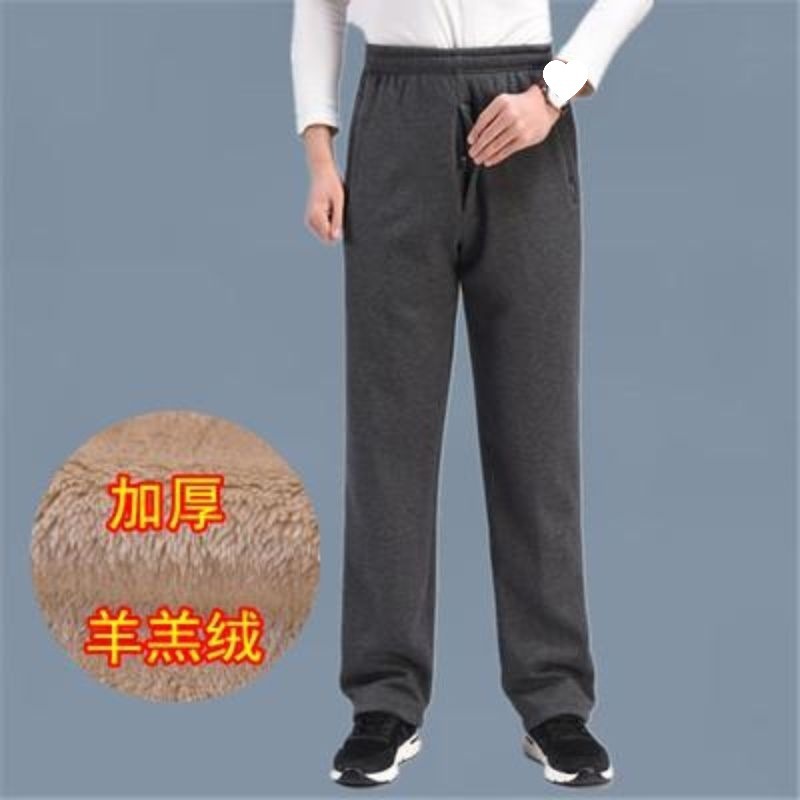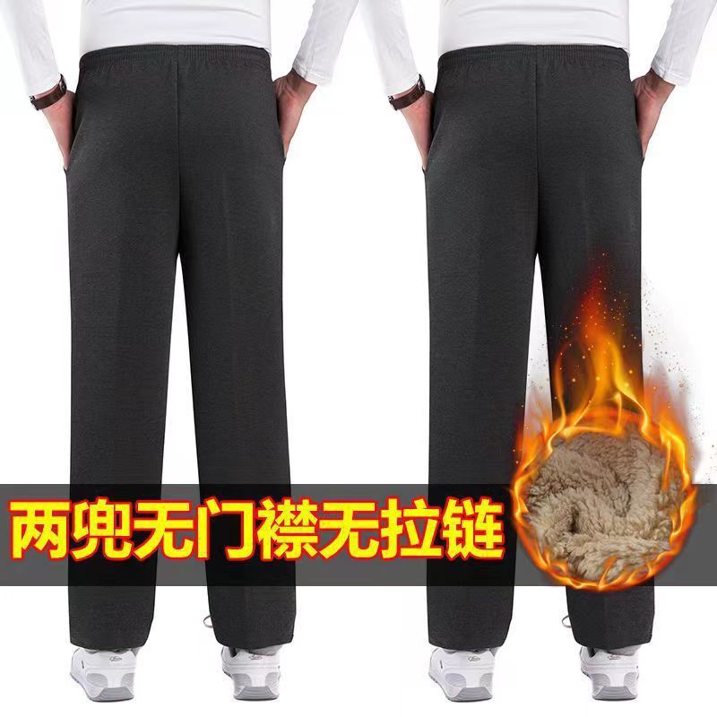 중년 및 노인을위한 Dishan 복장 기모 캐주얼 바지 남자 느슨한 허리 겨울 할아버지 아빠 노인 리다를위한 넓은 두꺼운 면 바지스토어 가기
