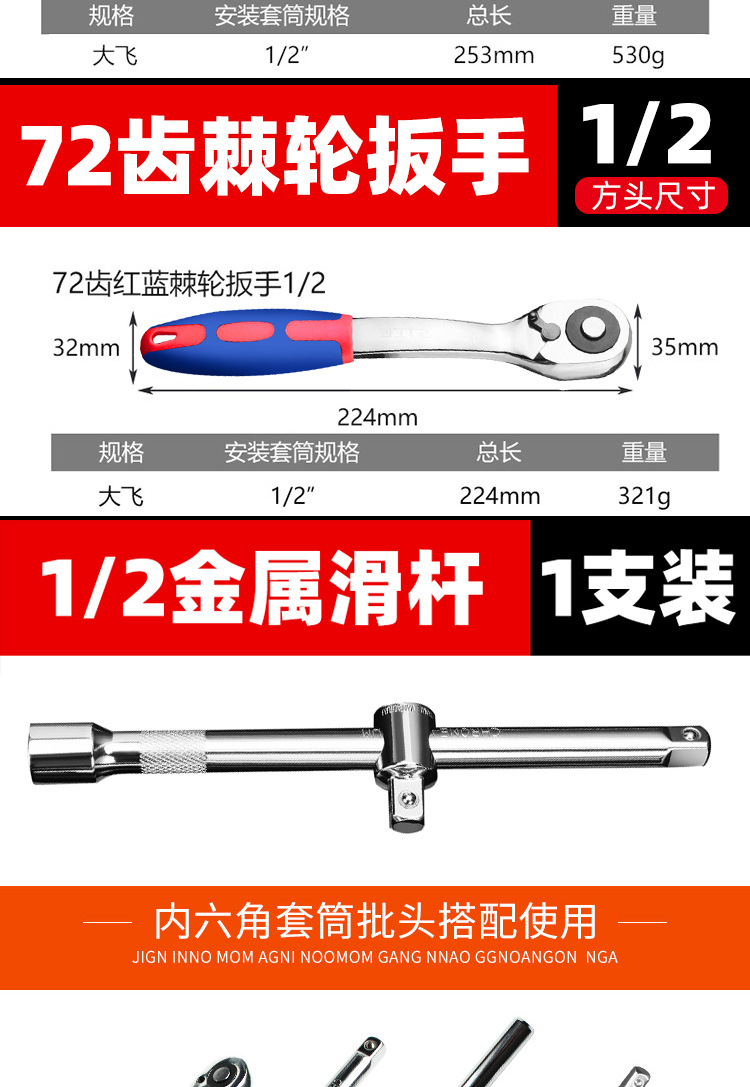 • 72톱니 빨간색과 파란색 래칫 렌치 1/2