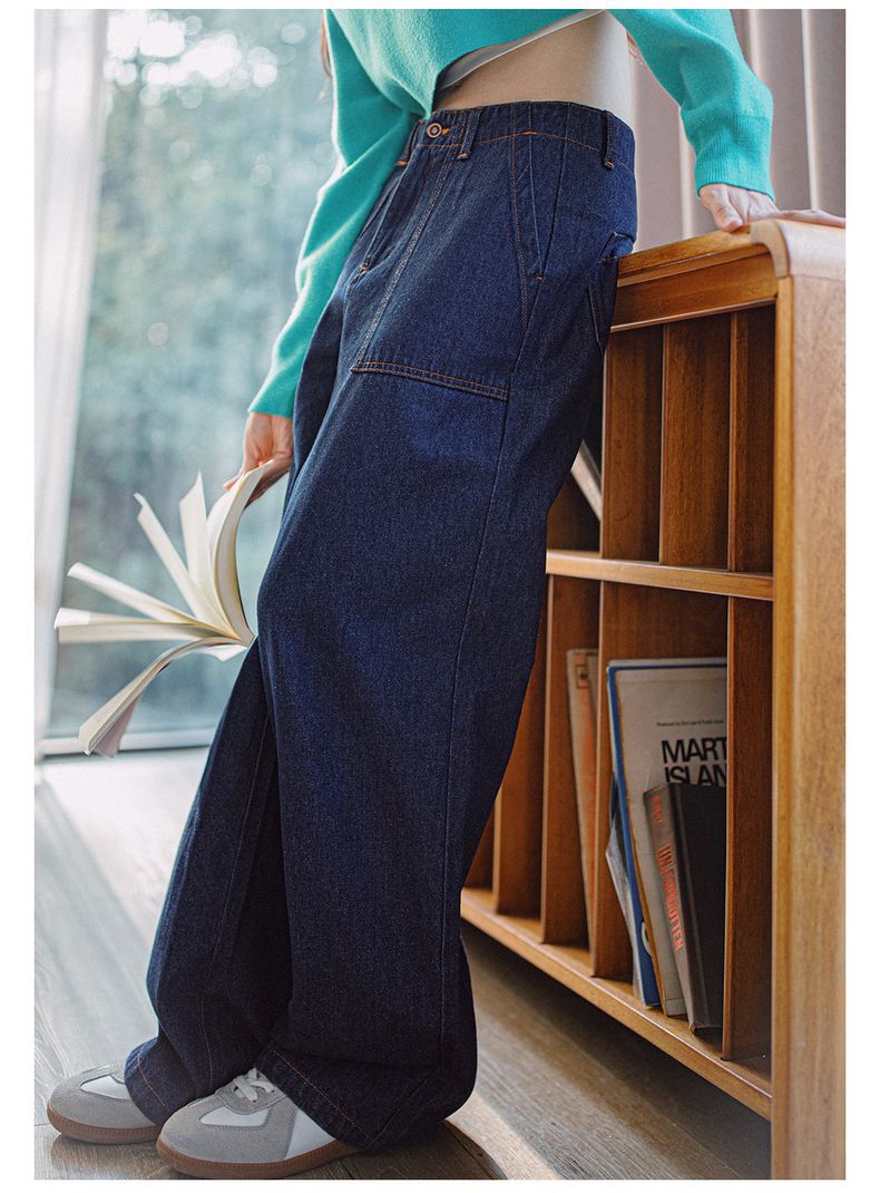 매든 빈티지 바지 좁은 판 스트레이트 청바지 씻은 넓은 다리 바지 느슨한 캐주얼 바지 가을과 겨울 여성