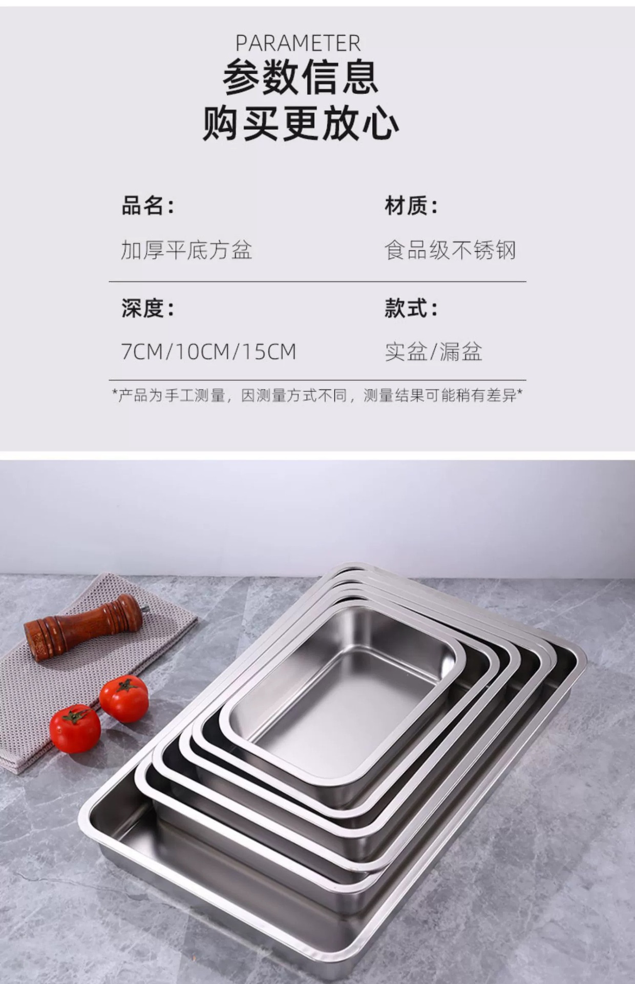 뚜껑이 두껍고 깊어진 평평한 바닥 트레이 평평한 직사각형 사각형 분지 레스토랑 찐 쌀판 고양이 쓰레기 분지스토어 가기