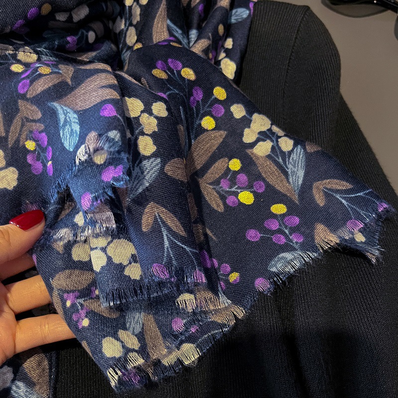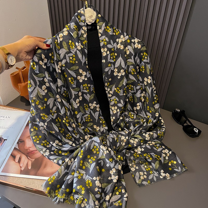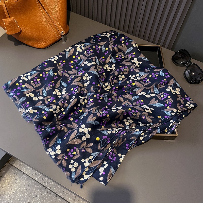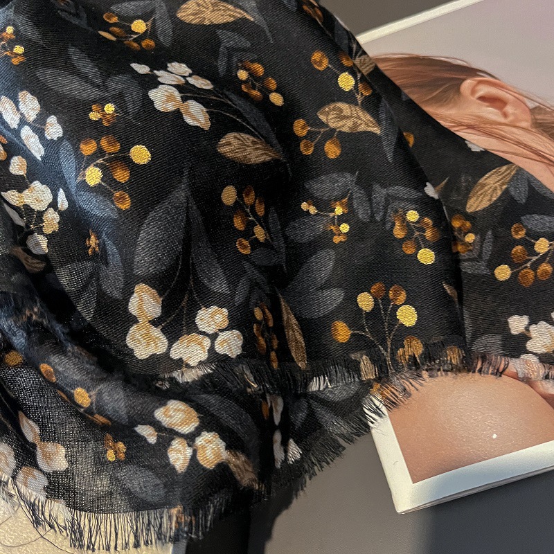 대외 무역 면화 및 리넨 스카프 여성 검은 과일 올 매치 패션 봄과 여름 목 보호 여행 태양 보호 사진 목도리 이중 사용스토어 가기