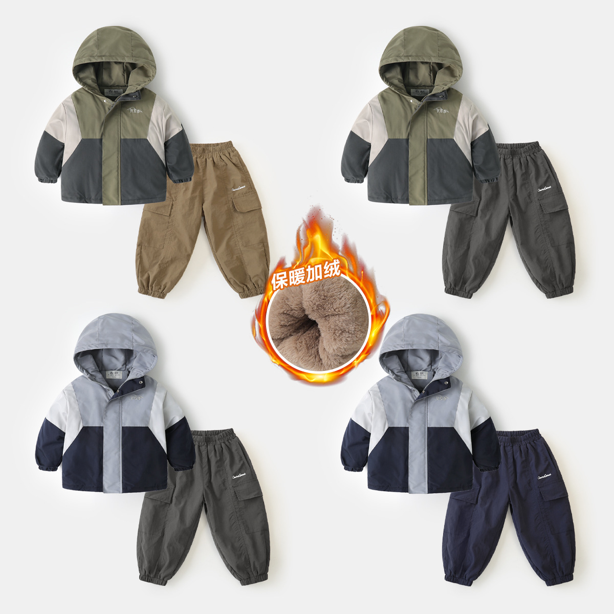 남학생 세트 겨울 의류 기모 두꺼운 면 패딩 코트 긴 바지 겨울 어린이 의류 아동용 면화 패딩 코트 UZ417스토어 가기
