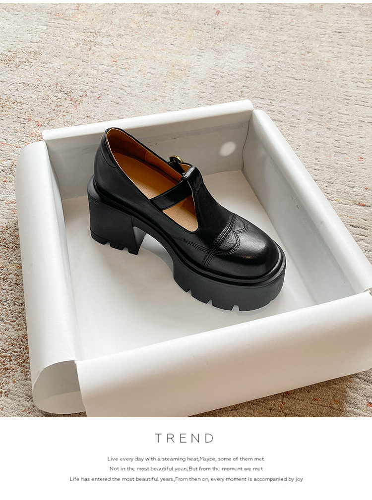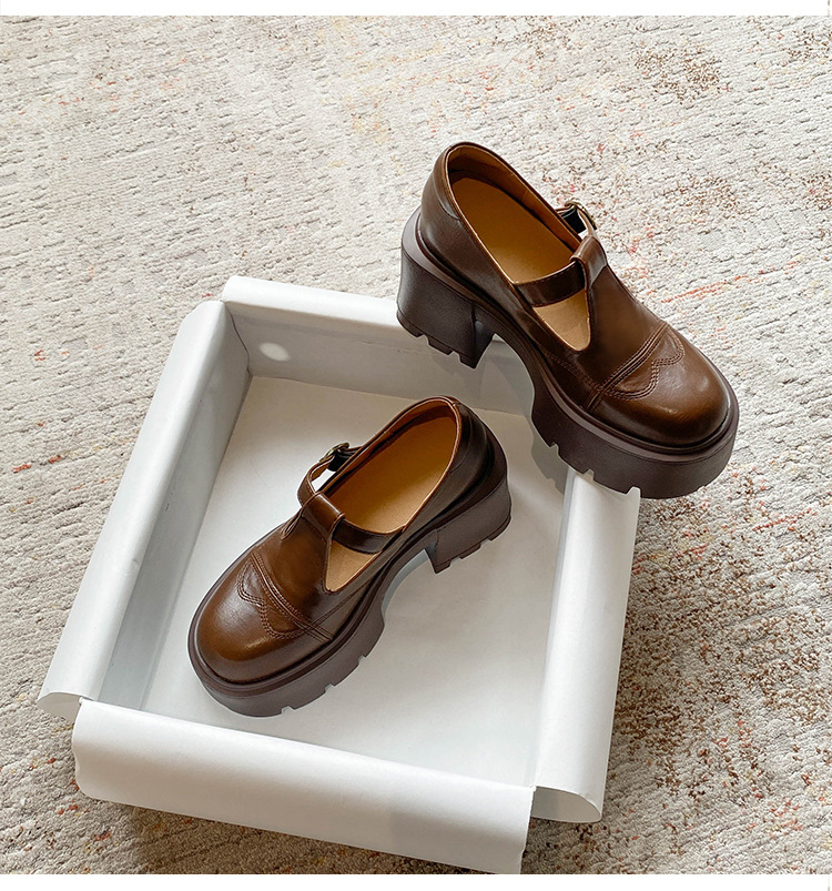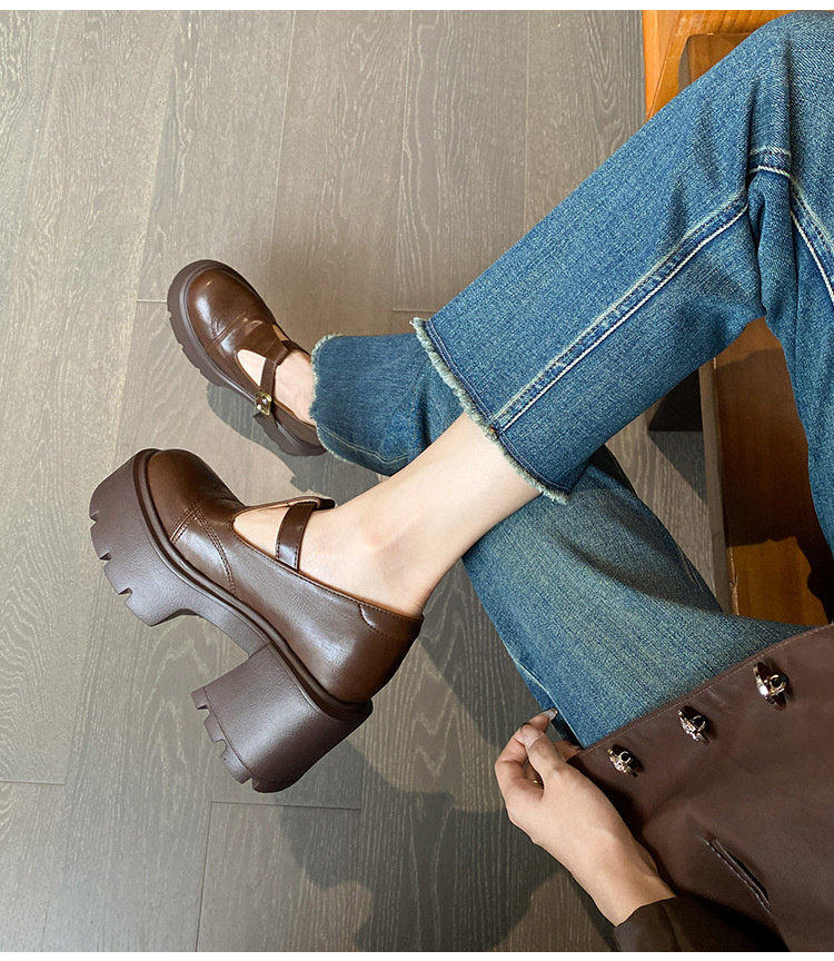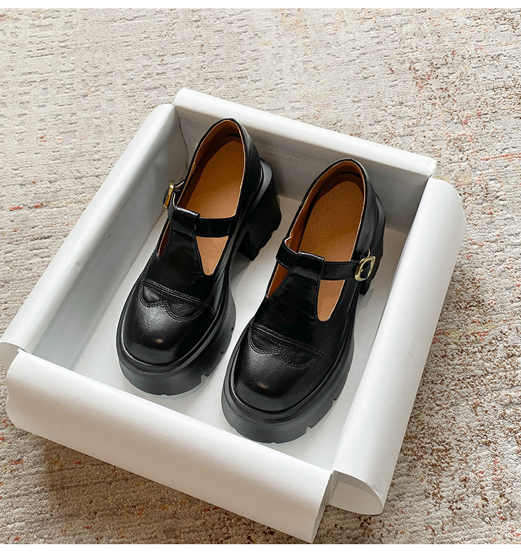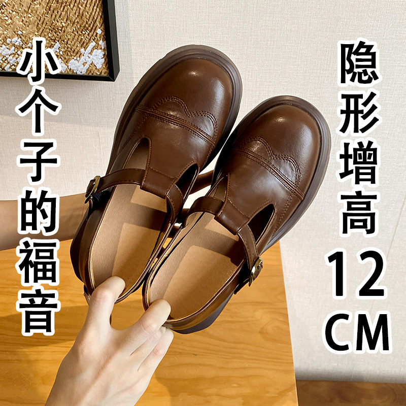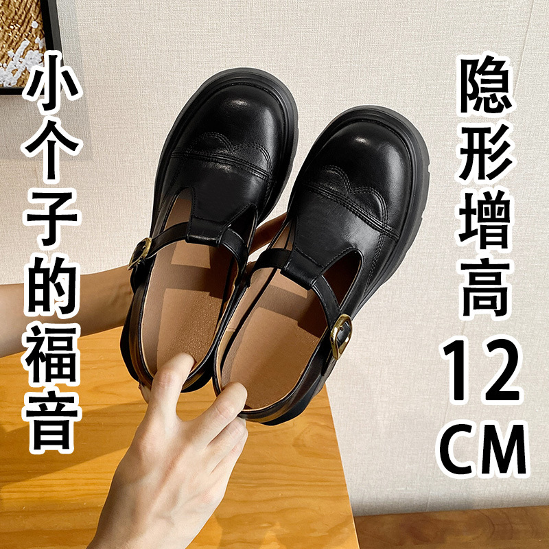 12lm ~ 작은 내부 높이 증가 새로운 두꺼운 바닥 하이힐 스몰 사이즈 메리 제인 신발 여성 작은 가죽 신발 레트로 싱글 신발 33스토어 가기