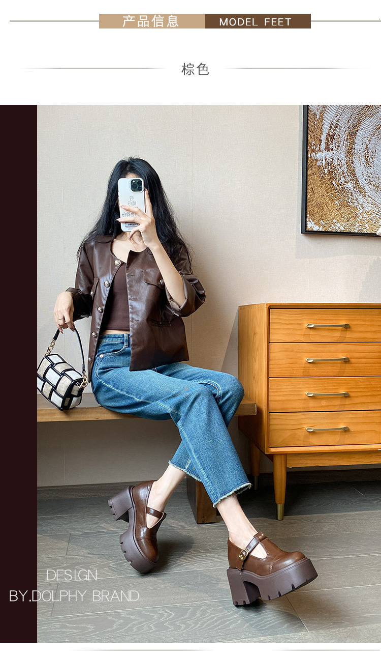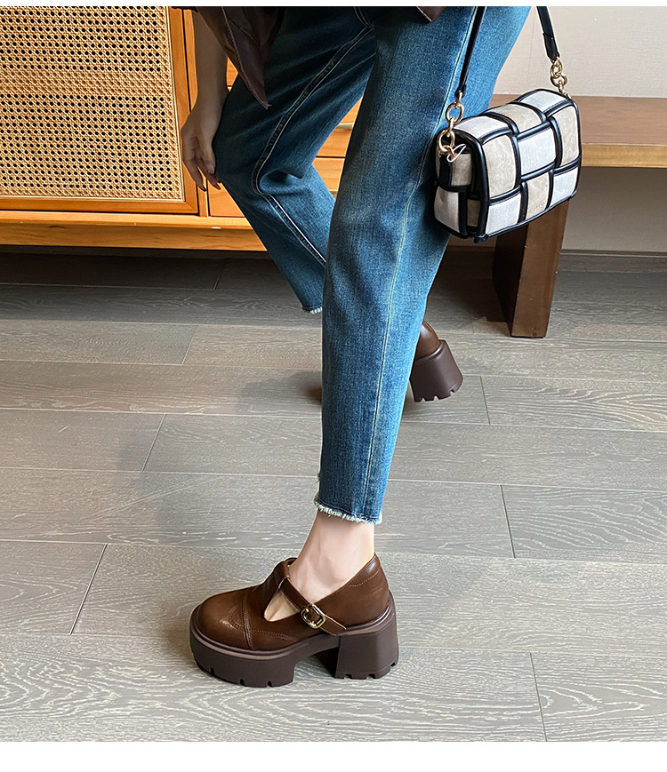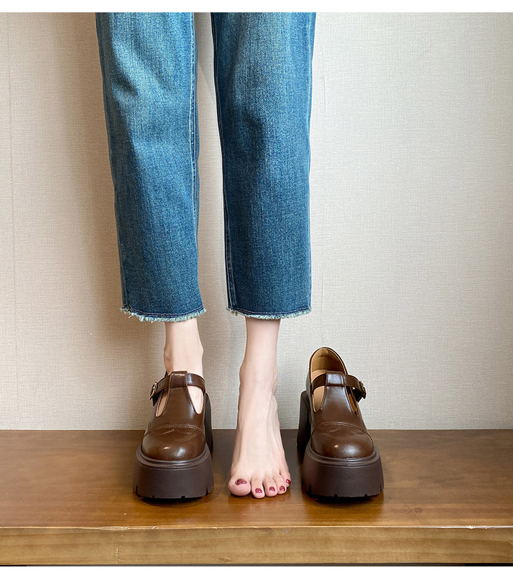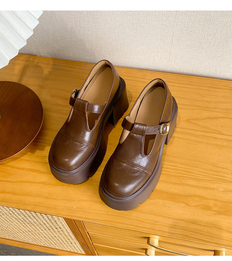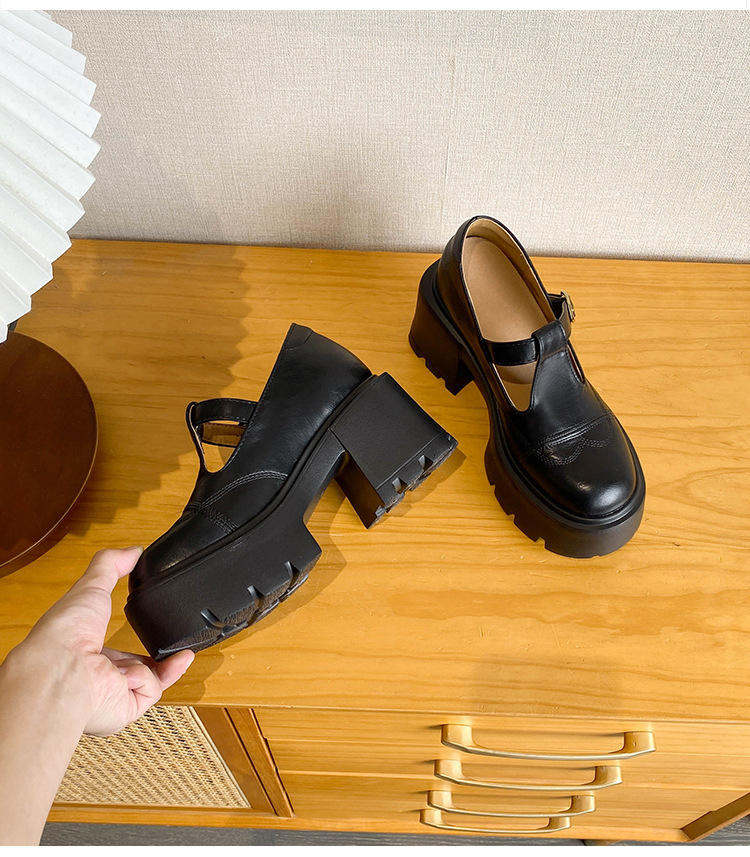 12lm ~ 작은 내부 높이 증가 새로운 두꺼운 바닥 하이힐 스몰 사이즈 메리 제인 신발 여성 작은 가죽 신발 레트로 싱글 신발 33스토어 가기