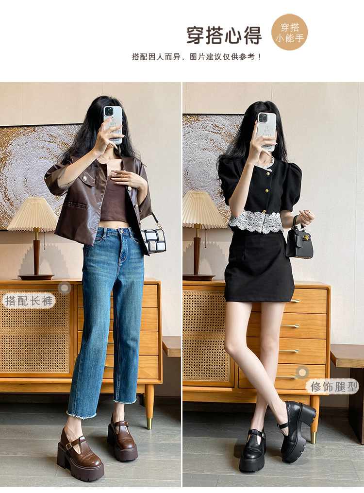 12lm ~ 작은 내부 높이 증가 새로운 두꺼운 바닥 하이힐 스몰 사이즈 메리 제인 신발 여성 작은 가죽 신발 레트로 싱글 신발 33