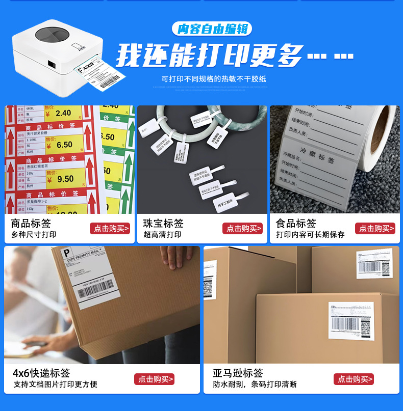 9.应用广泛,适用于工厂生产和仓库打标贴标,快递运输面单,货架标签,商品价格标签,邮政标签,医药行业和珠宝行业标签等。