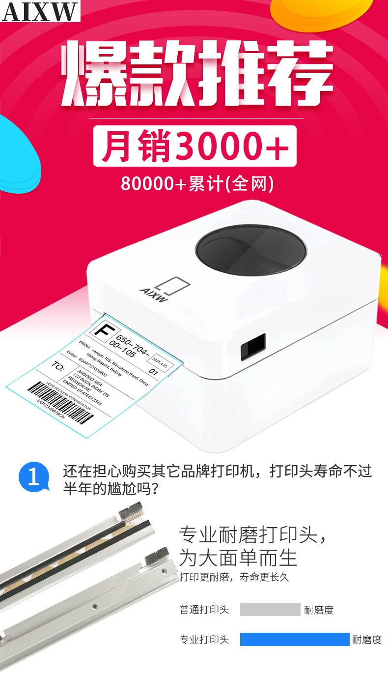 AI-110D亚马逊热销热敏标签打印机蓝牙手机连接快递单条码打印