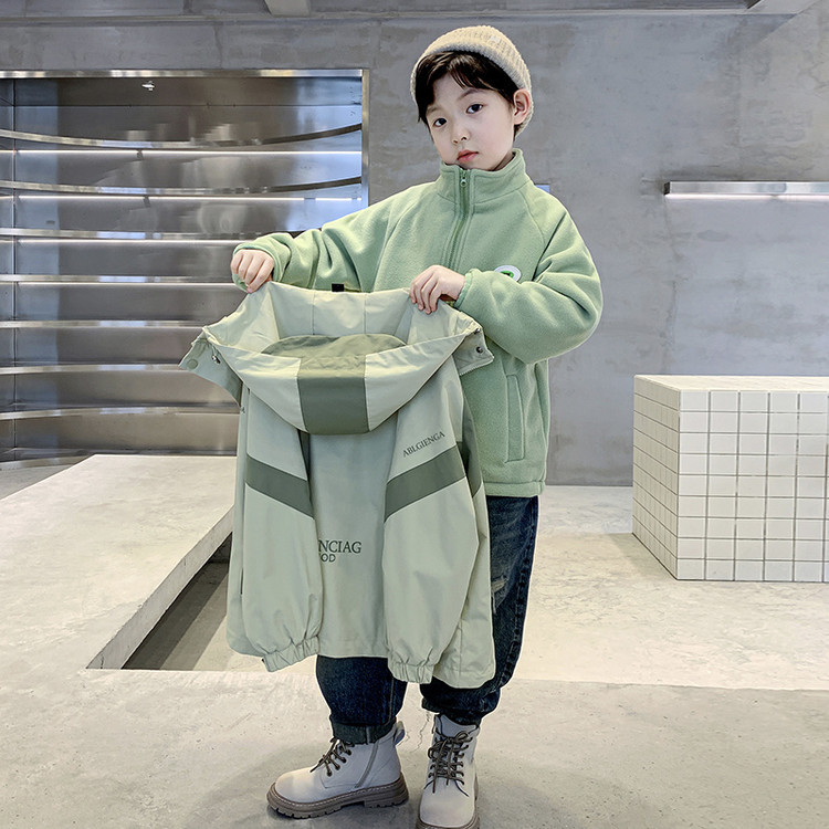 남아용 두꺼운 재킷, 가을 겨울 2025년형 3-in-1 탈부착 가능 신상품, 중대형 어린이용 면 안감 스타일리시 재킷스토어 가기