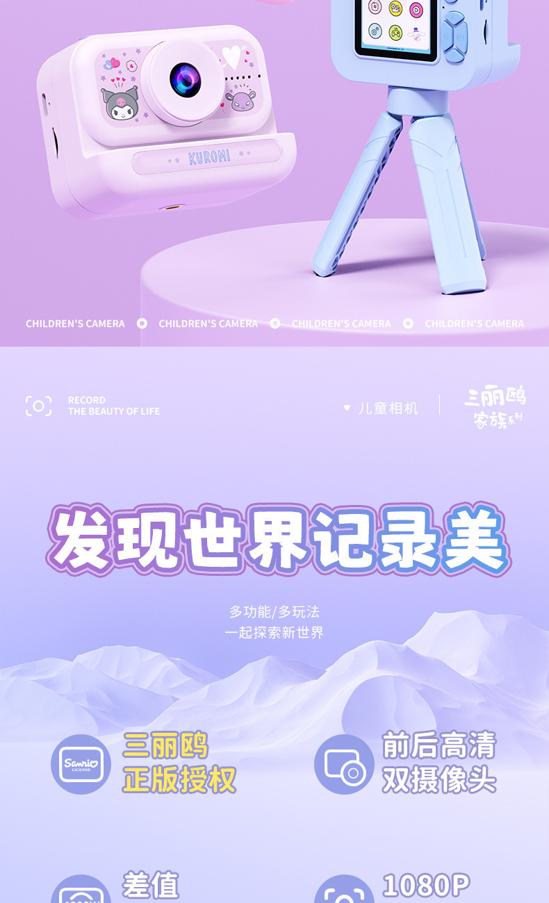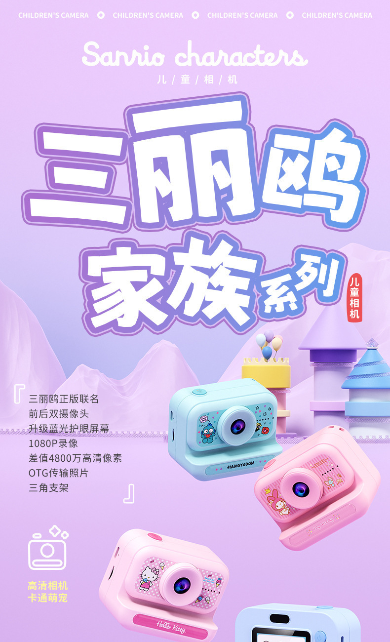 산리오 키티 쿨로 미 어린이 디지털 카메라 HD 브래킷 캠퍼스 창조적 인 편리한 카메라