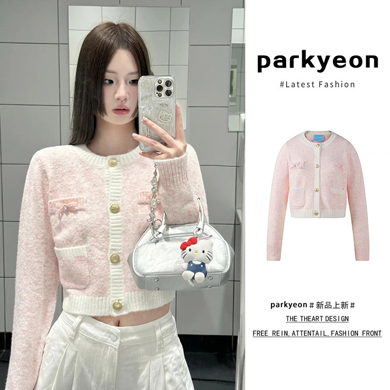 작은 샤넬 스타일 긴팔 니트 카디건 여성의 이른 가을 우아한 슬리밍 달콤한 활 잡색 탑스토어 가기