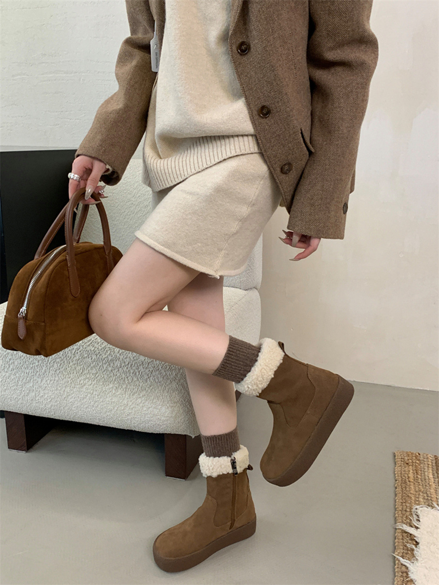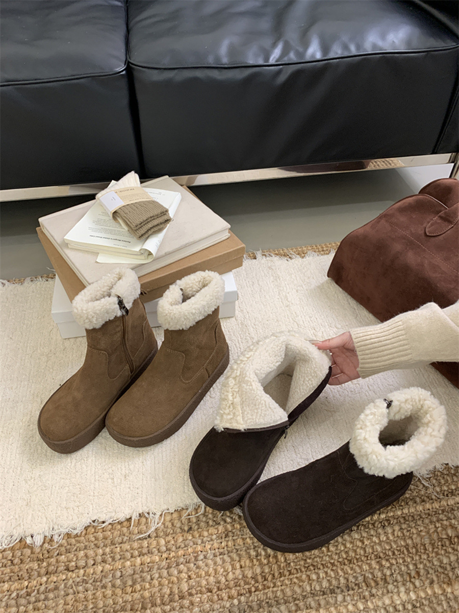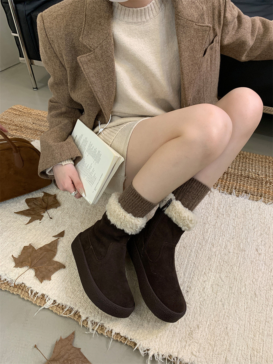 양고기 마오 마오 두꺼운 밑창 북동쪽 면화 신발 2024 가을과 겨울 소 가죽 버전 기모 따뜻한 스노우 부츠 플랫폼 바닥 작은 짧은 부츠스토어 가기