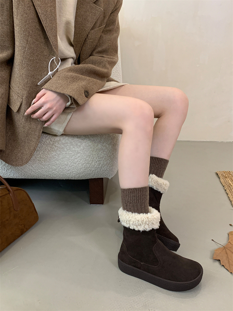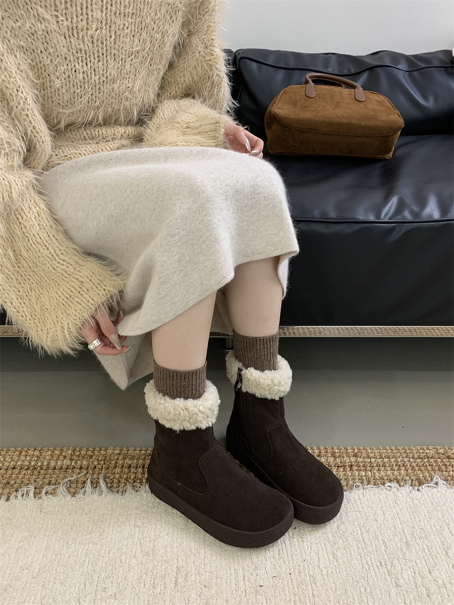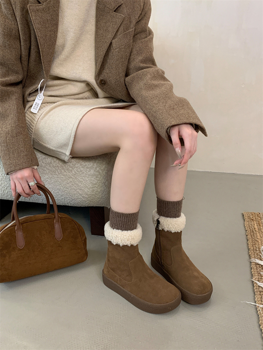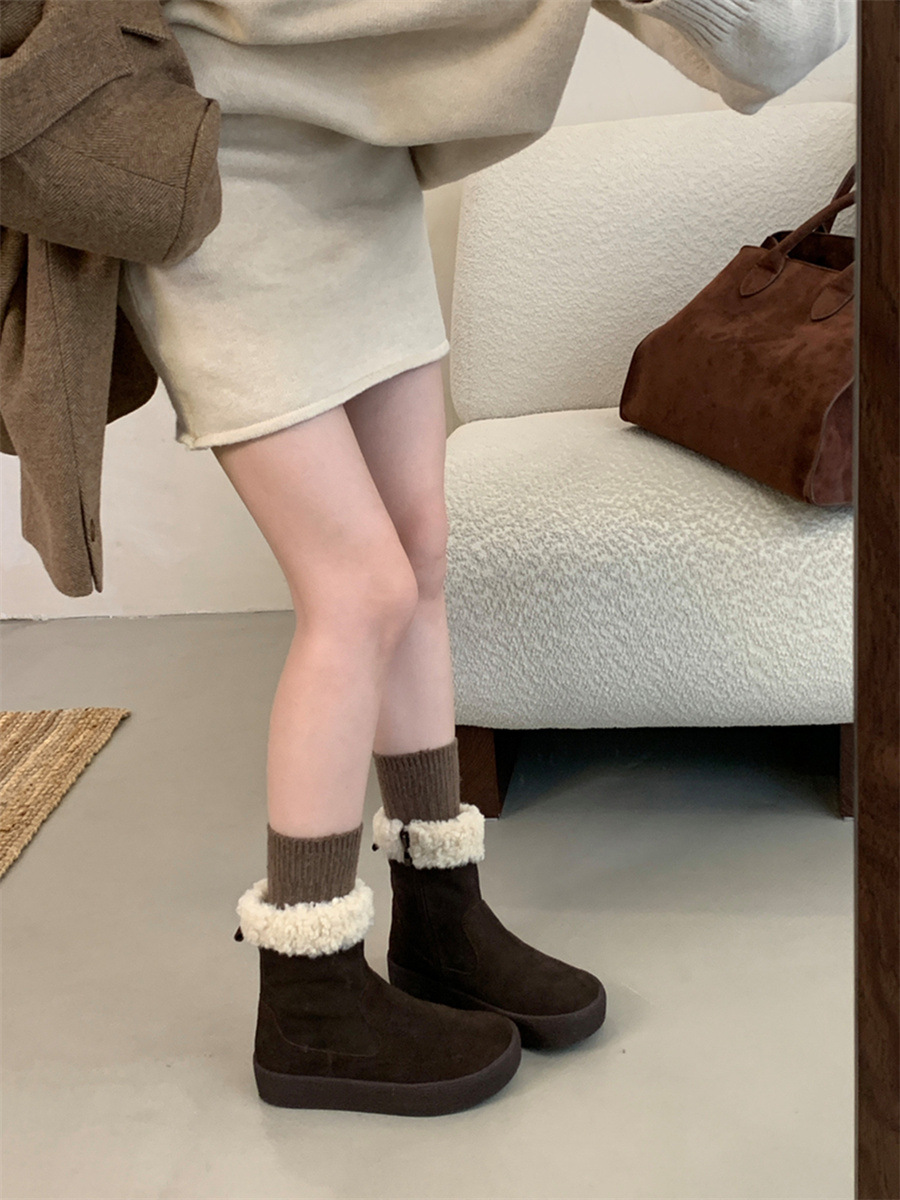 양고기 마오 마오 두꺼운 밑창 북동쪽 면화 신발 2024 가을과 겨울 소 가죽 버전 기모 따뜻한 스노우 부츠 플랫폼 바닥 작은 짧은 부츠스토어 가기