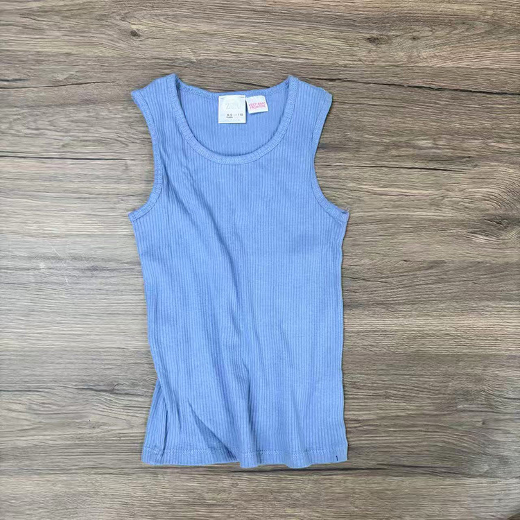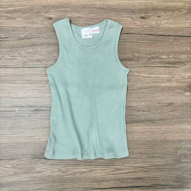유럽과 미국의 싱글 보이의 단색 실 목화 티셔츠 작은 소년의 I 자형 조끼 어린이 면화 민소매 탑스토어 가기