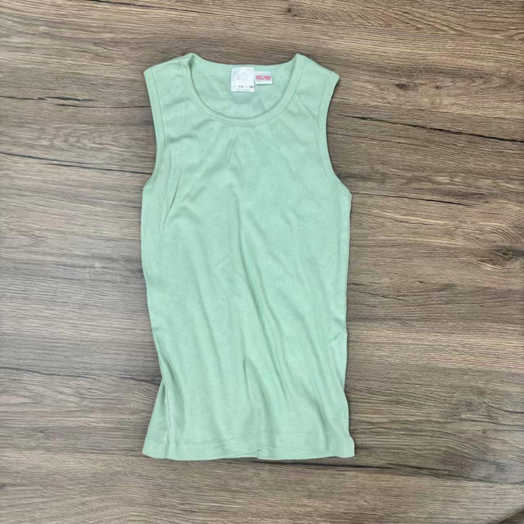 유럽과 미국의 싱글 보이의 단색 실 목화 티셔츠 작은 소년의 I 자형 조끼 어린이 면화 민소매 탑