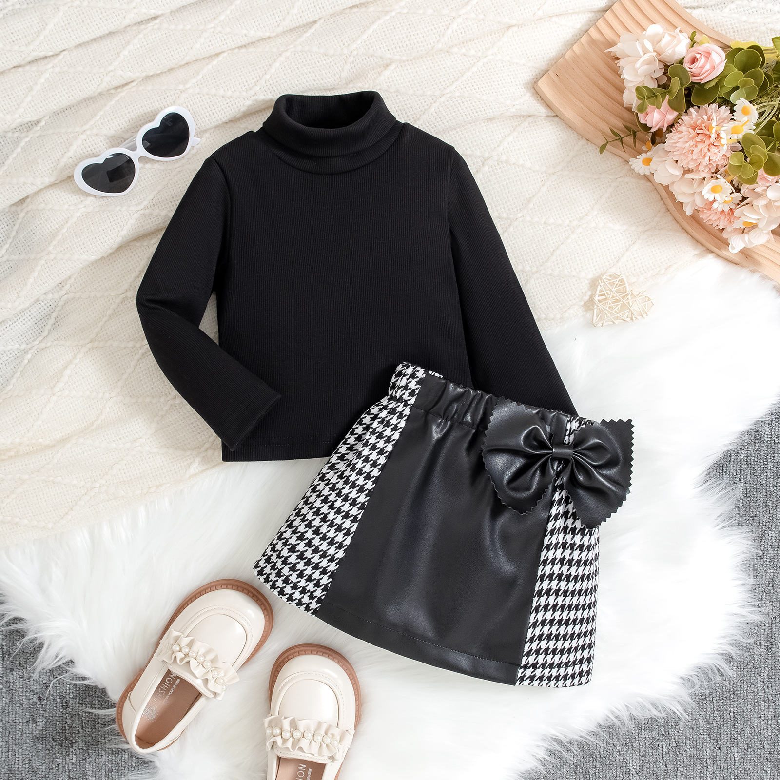 아마존 유럽과 미국의 봄과 가을 새로운 레저 소녀 세트 어린이 단색 높은 목 긴 소매 활 치마스토어 가기