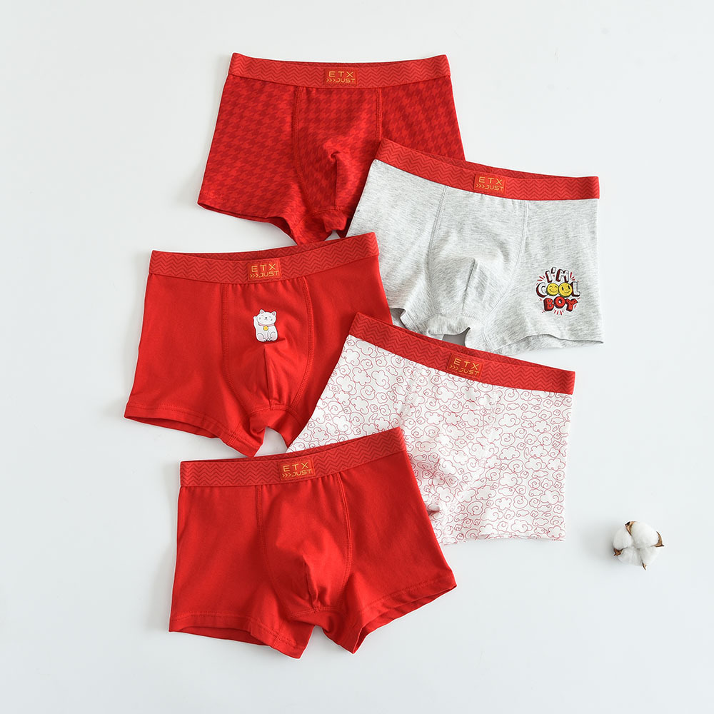 ETX JUST 어린이 속옷 새해 젊은 소년 빨간 속옷 클래스 A 풀업 면 대형 어린이 복서 반바지스토어 가기