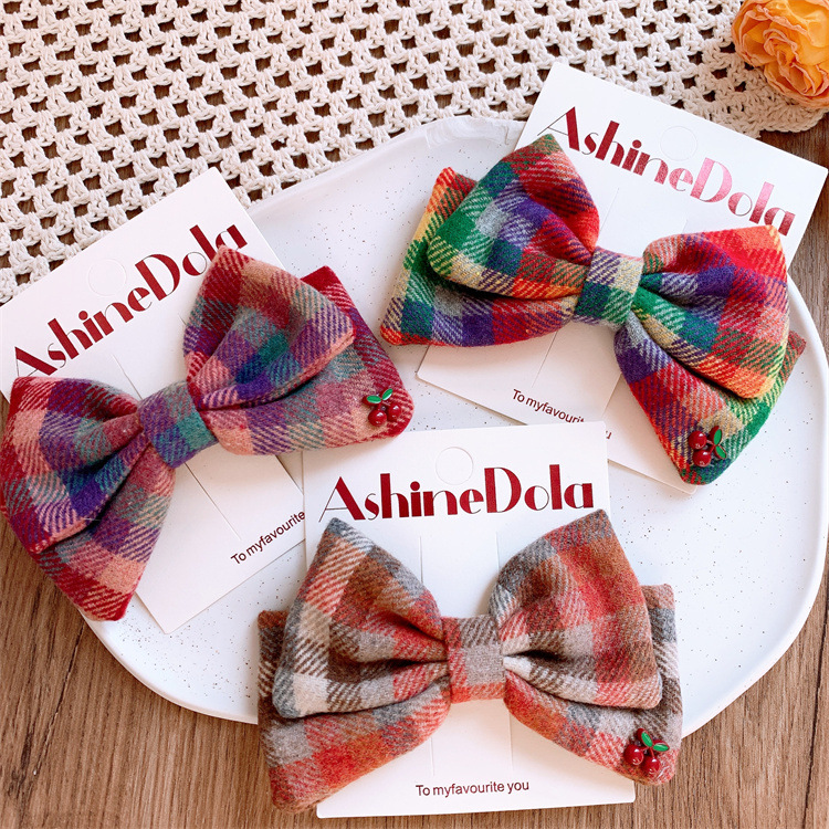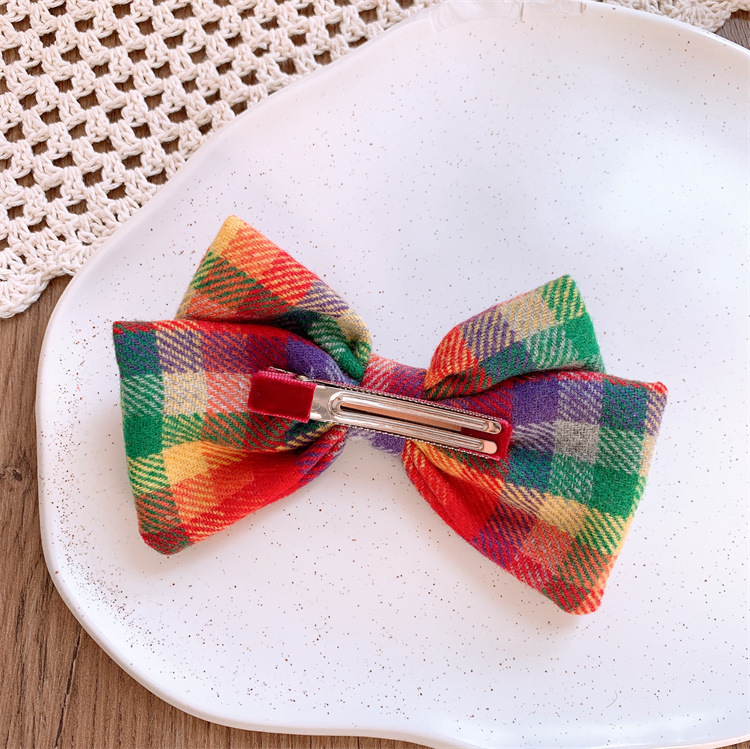 새로운 어린이 대형 격자 무늬 활 머리핀 레트로 달콤한 소녀의 머리 클립 부모-어린이 머리핀 머리옷스토어 가기