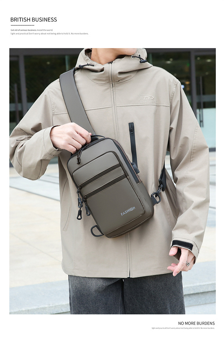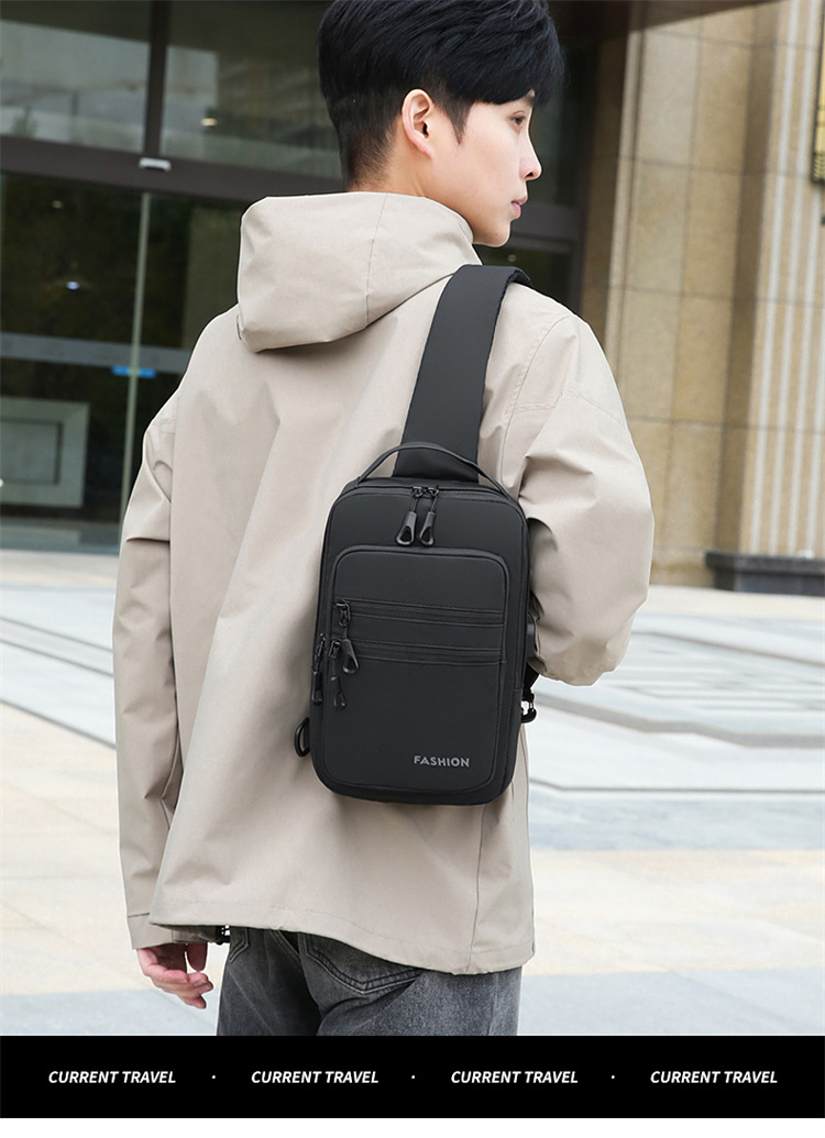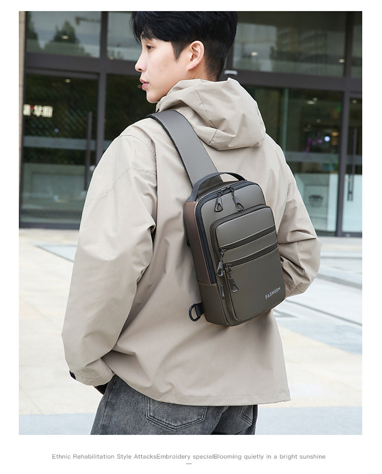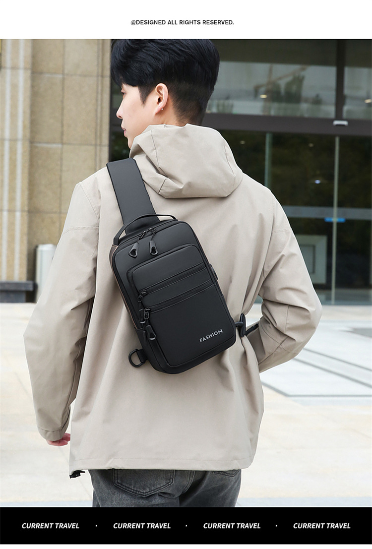 간단한 2024 새로운 남성 가슴 가방 유행 간단한 패션 캐주얼 사첼 다기능 남성 어깨 크로스 바디 백