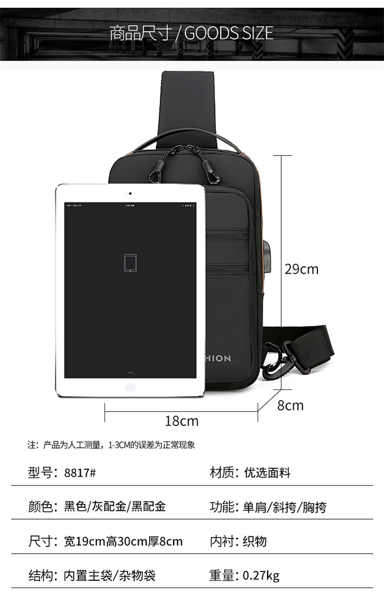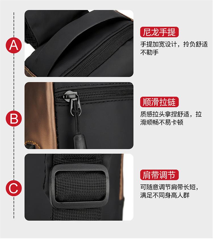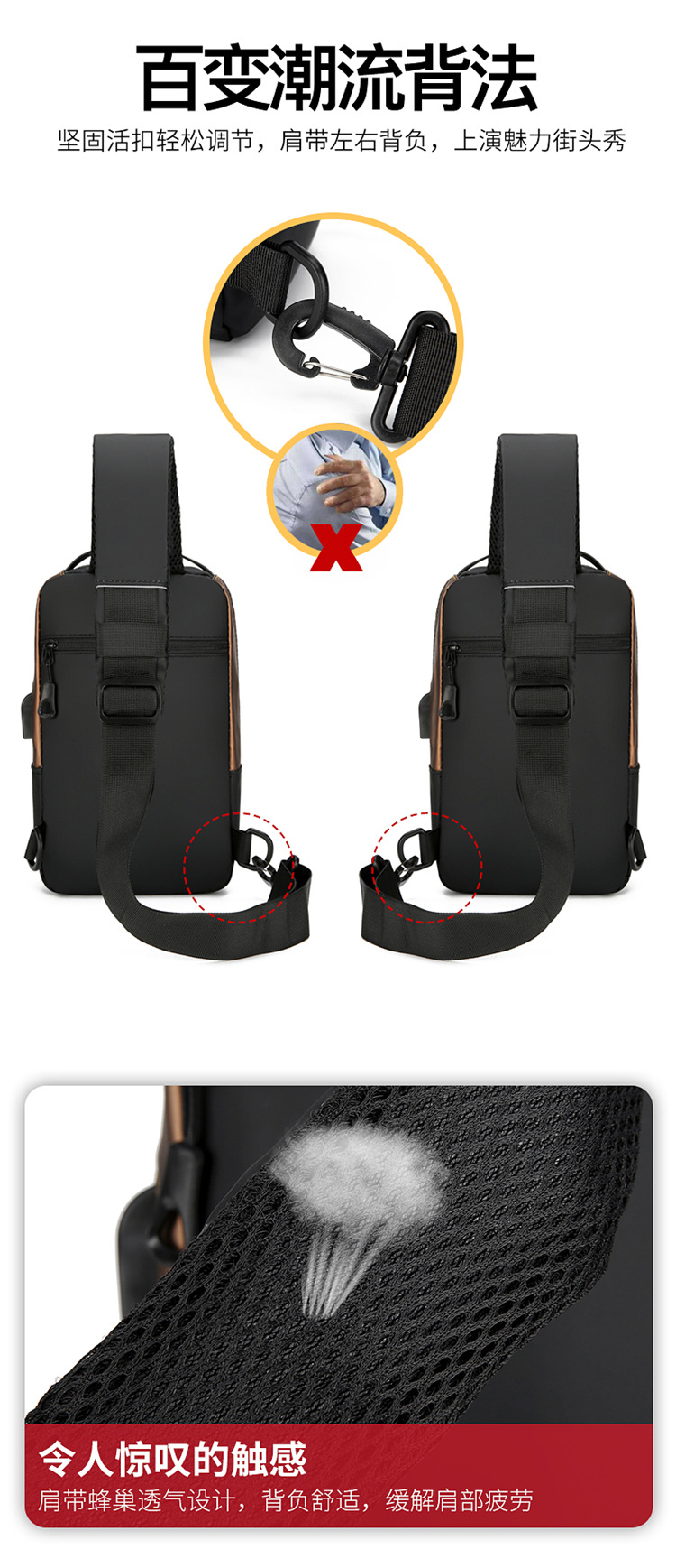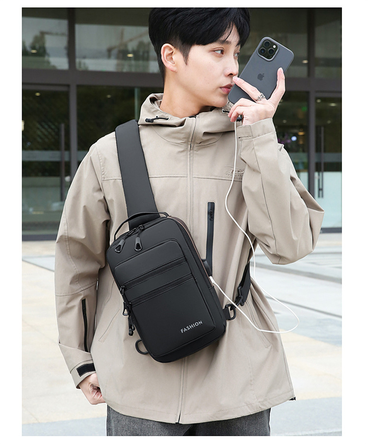 간단한 2024 새로운 남성 가슴 가방 유행 간단한 패션 캐주얼 사첼 다기능 남성 어깨 크로스 바디 백