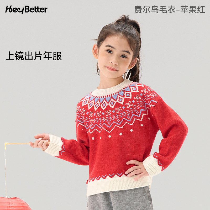 HeyBetter New Fell Island Wool Pullover 어린이 가을 및 겨울 부모 자카드 스웨터 소년 소녀 기지 용