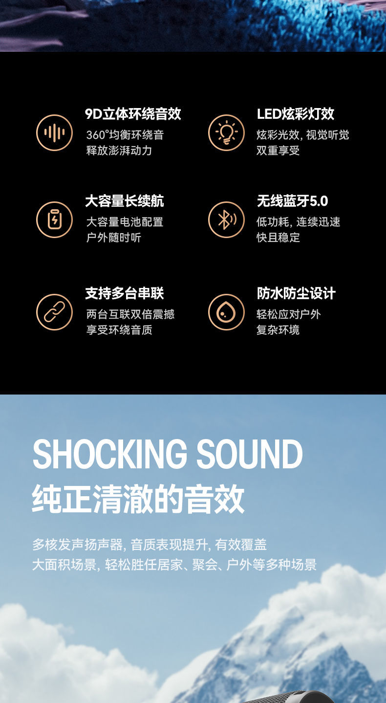 국경 간 야외 휴대용 IPX6 방수 오디오 무선 원통형 스포츠 사이클링 자동차 블루투스 스피커 슬링스토어 가기
