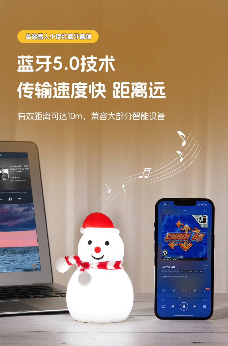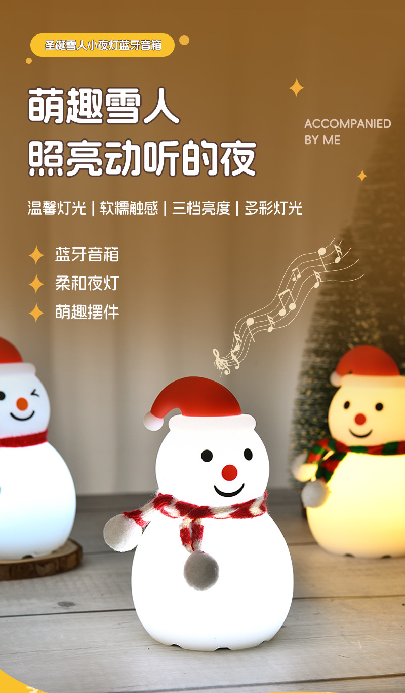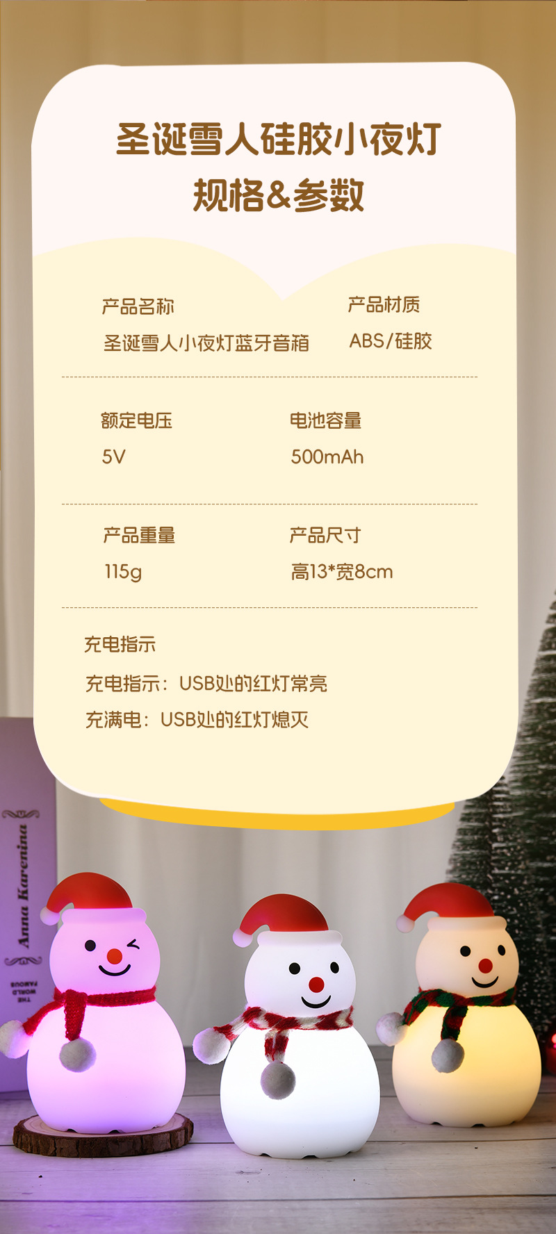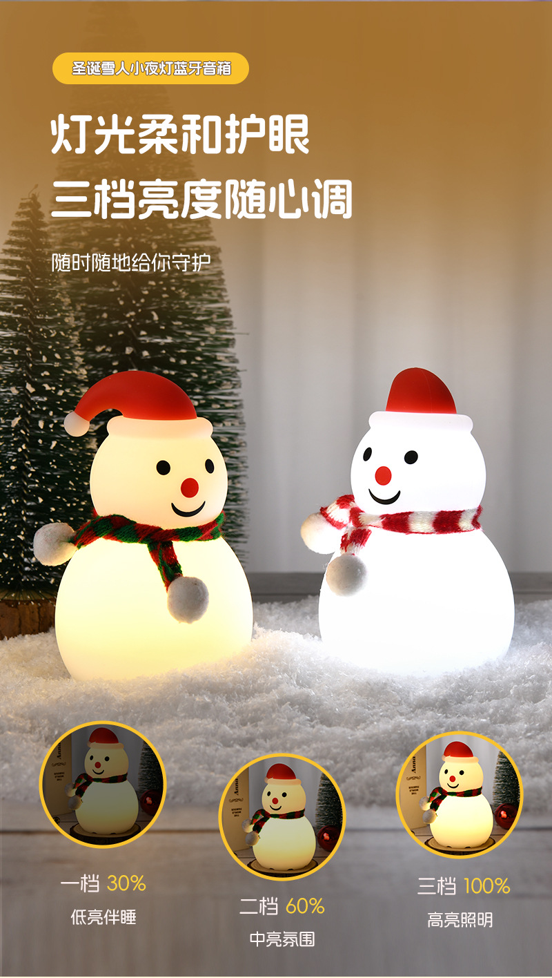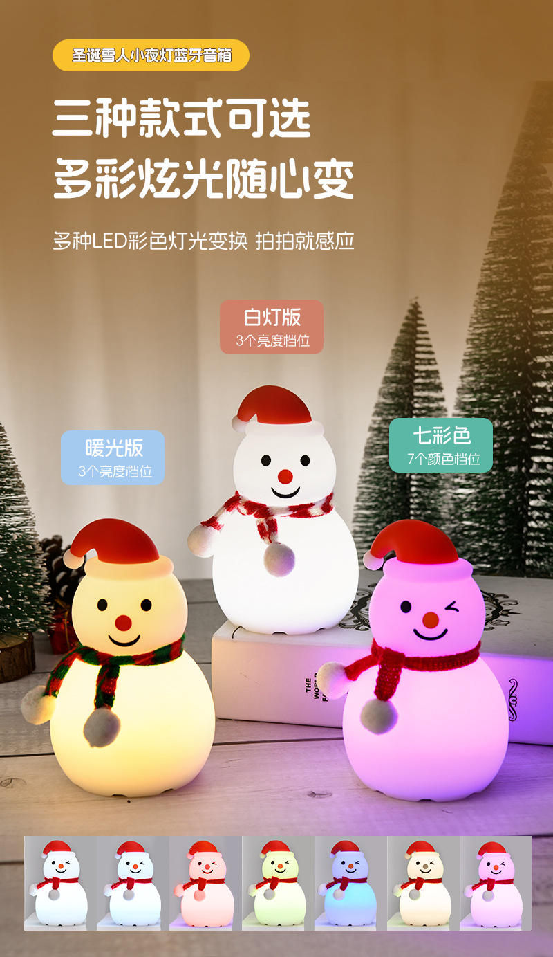크리스마스 장식 눈사람 팻팻 램프 실리콘 블루투스 스피커 야간등 (크로스보더 아마존 틱톡 신제품)