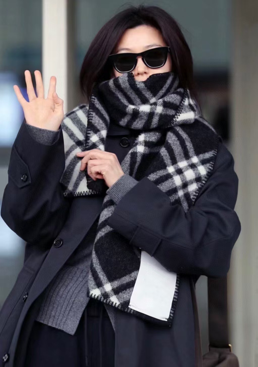 콴 지현 따뜻한 유행 스카프 여자 겨울 두꺼운 긴 편지 격자 무늬 레몬 노란색 후드 백 스카프