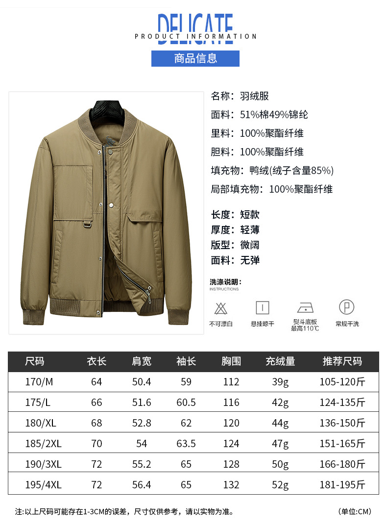 겨울 새 남자 야구 칼라 짧은 다운 재킷 패션 캐주얼 화이트 오리 다운 따뜻한 작업복 재킷 경량스토어 가기