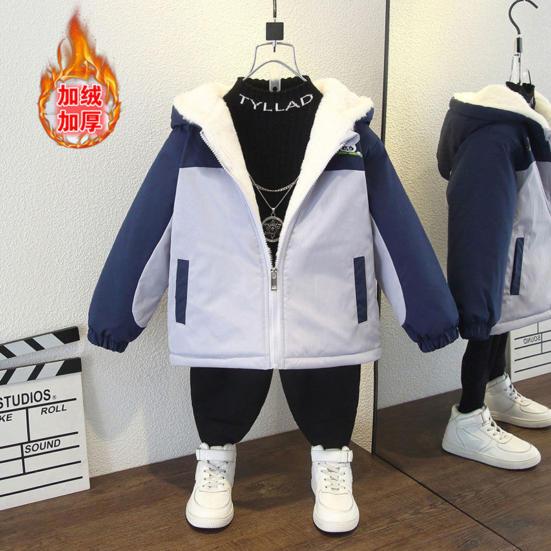 소년 코트 가을, 겨울 2025 새로운 스타일 외국 스타일 어린이 소년 벨벳 두꺼운 한국 스타일 아동상의 도매스토어 가기