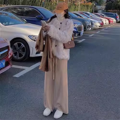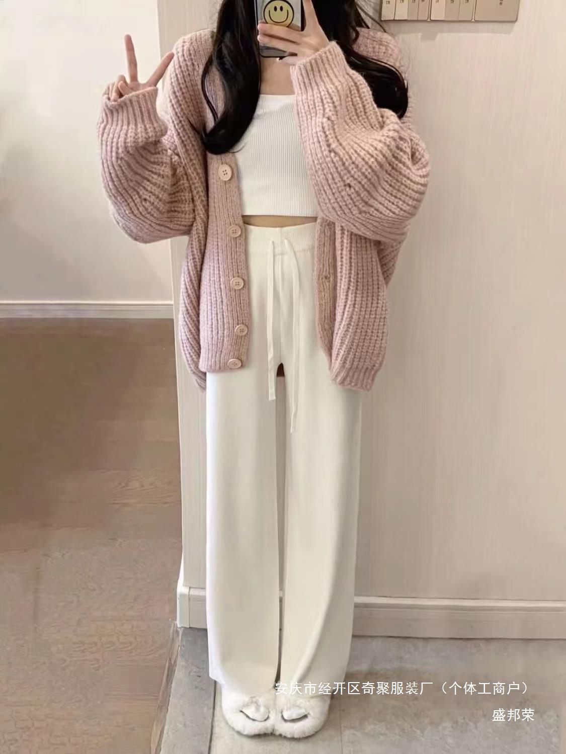 여성용 화이트 니트 와이드 팬츠, 가을용, 키 작은 분들을 위한 드레이프감 있는 하이웨이스트 스트레이트 팬츠, 루즈핏 슬림핏 롱 팬츠, 겨울용스토어 가기