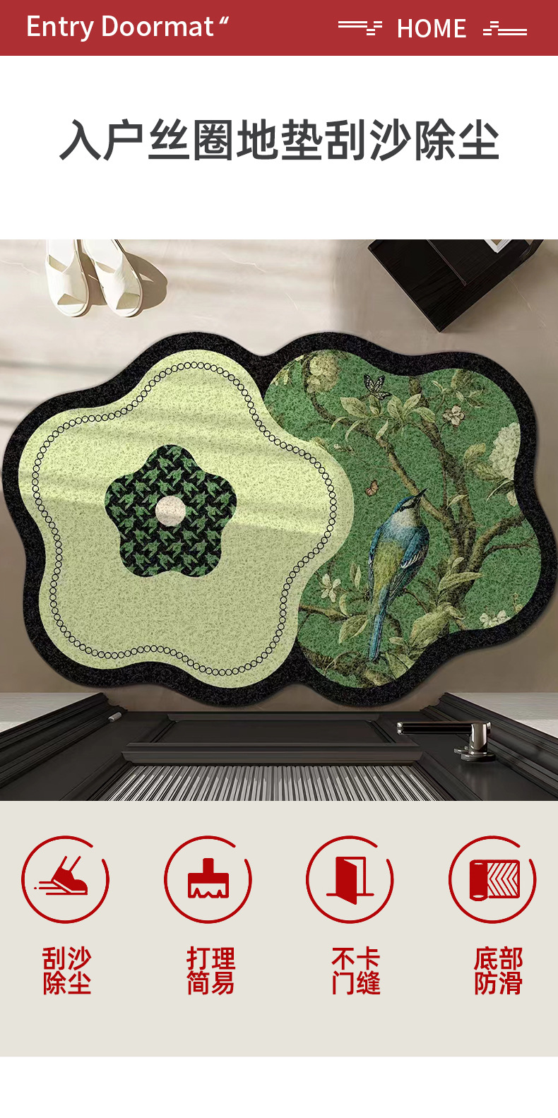 국경 새 모양의 실크 링 바닥 매트 내마모성 미끄럼 방지 카펫 입구 문 먼지 매트 쉬운 관리 바닥 매트스토어 가기