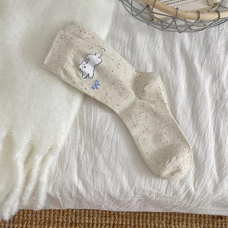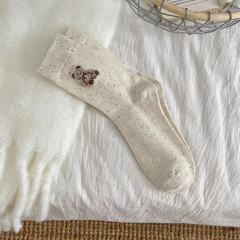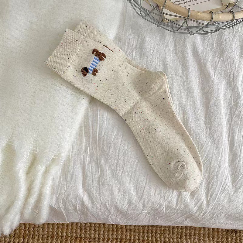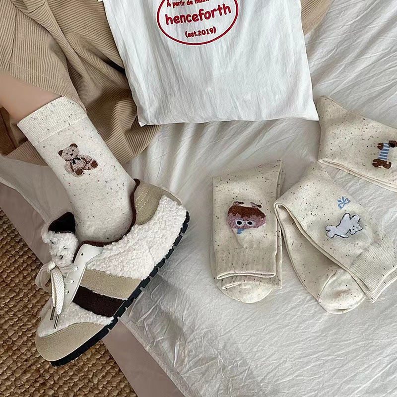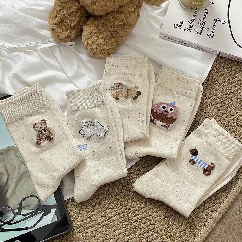 엄선된 여성용 디자인 양말, 여성용 유백색 가을 겨울 스택 양말, 귀여운 만화 동물 인형 여성용 종아리 중간 양말스토어 가기