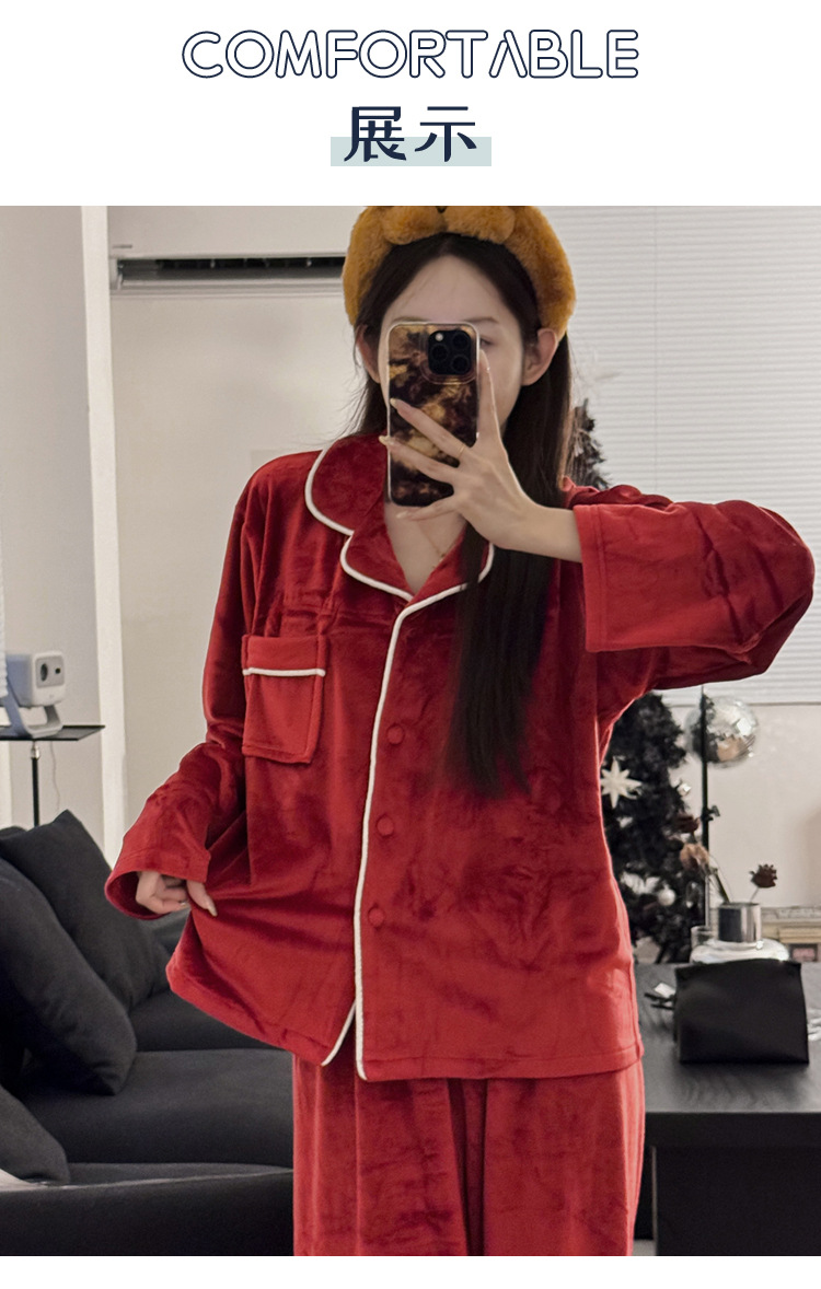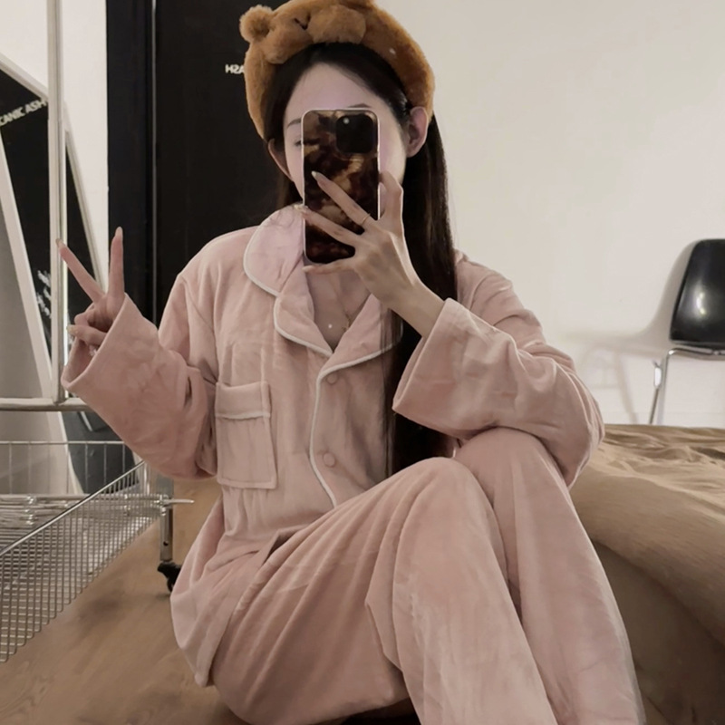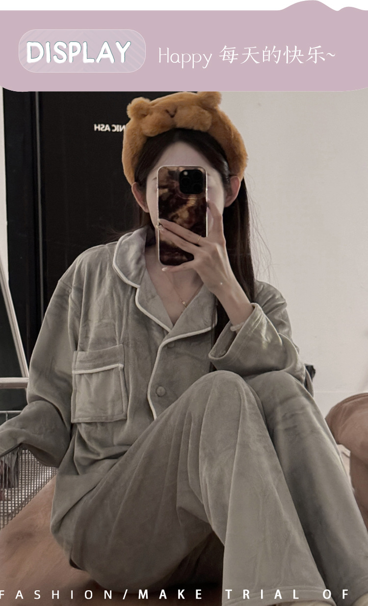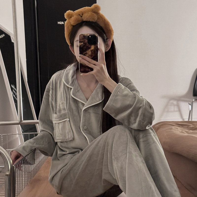 커플의 캐주얼 편안한 따뜻한 파자마 남성용 느슨한 홈 의류 소프트 아일랜드 벨벳 여성의 달콤한 간단한 세트