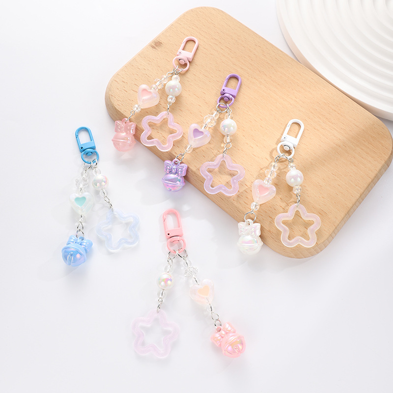새로운 벨 술 키 체인 펜던트 반짝이 속이 빈 다섯개 별 양면 사랑 이어폰 케이스 가방 액세서리
