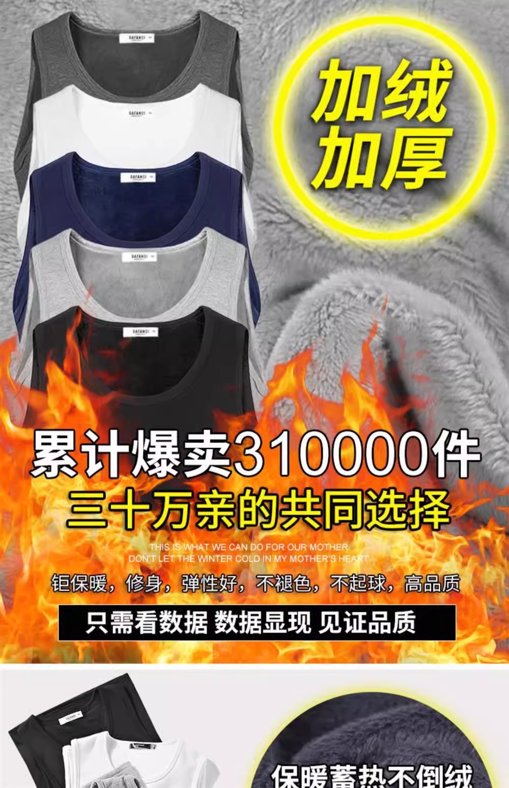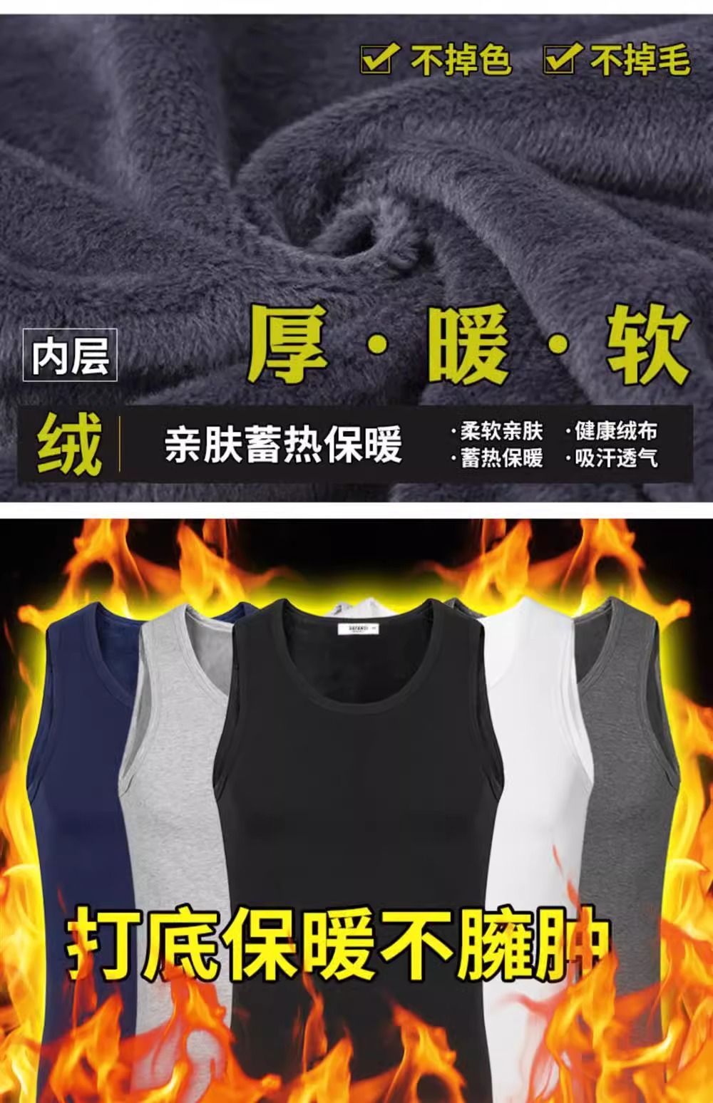기모 두꺼운 따뜻한 조끼 남성용 울 조끼 가을 및 겨울 착용 내복 타이트웨어 조끼 면 민소매 베이스 슬림