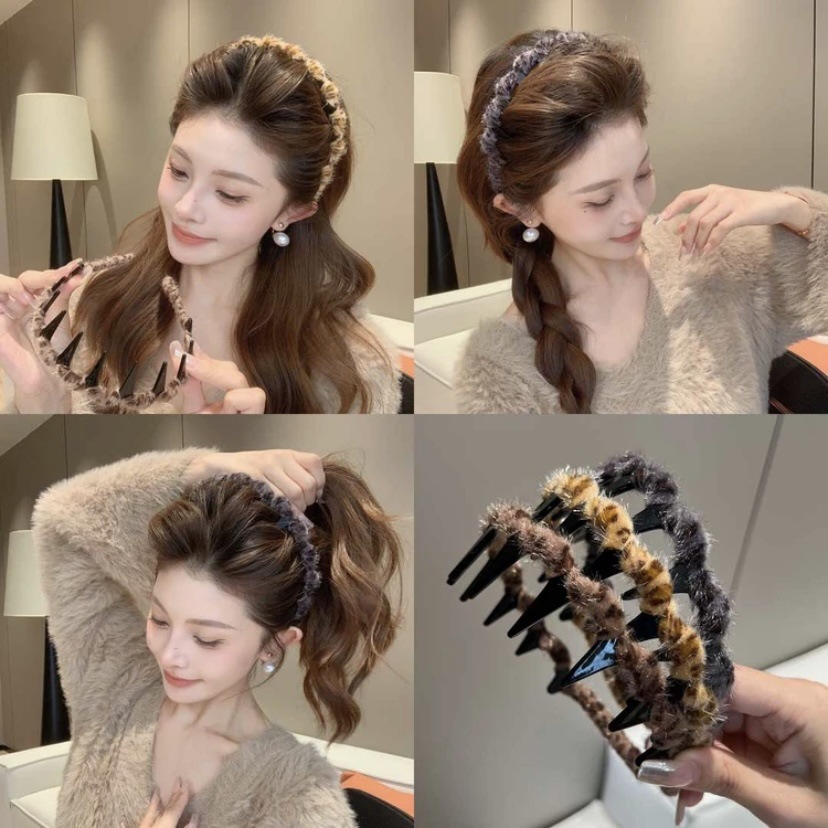 달콤한 쿨 레오파드 패턴 치아 웨이브 헤어 밴드 여성 가을 푹신한 아티팩트 워시 얼굴 압력 헤어 안티 슬립 헤드 밴드 듀얼 사용 웨이브 헤어 밴드