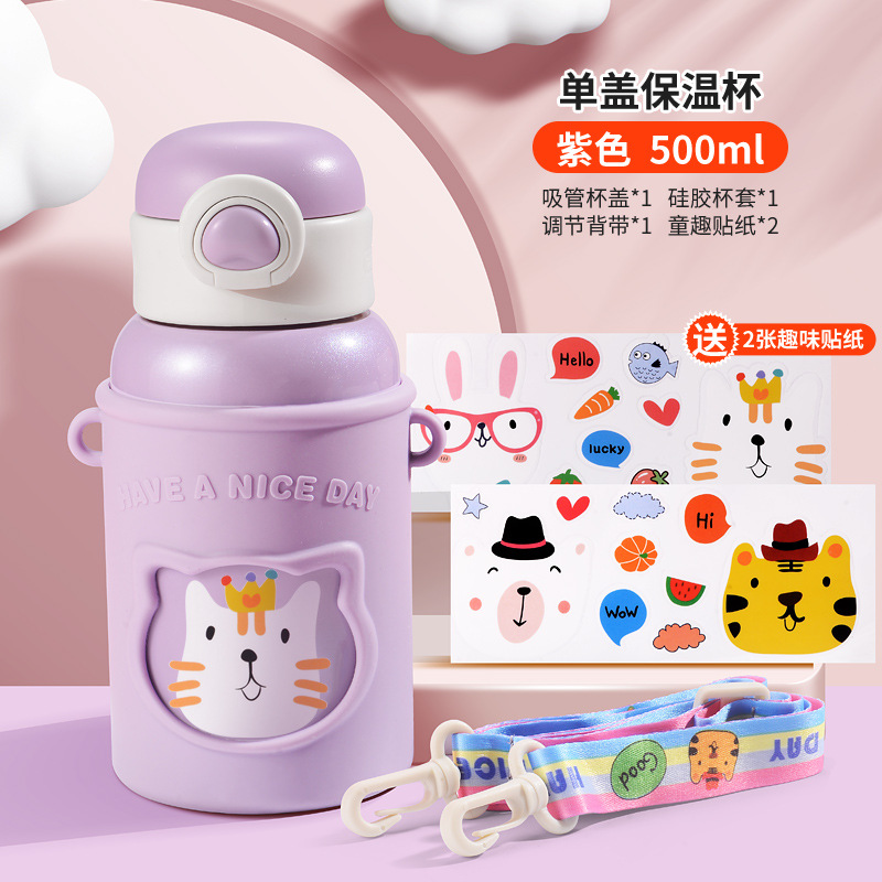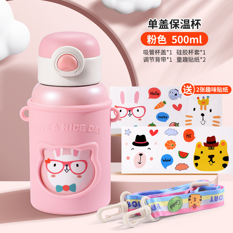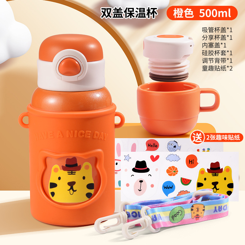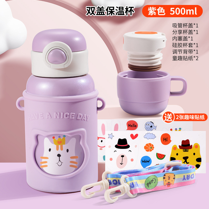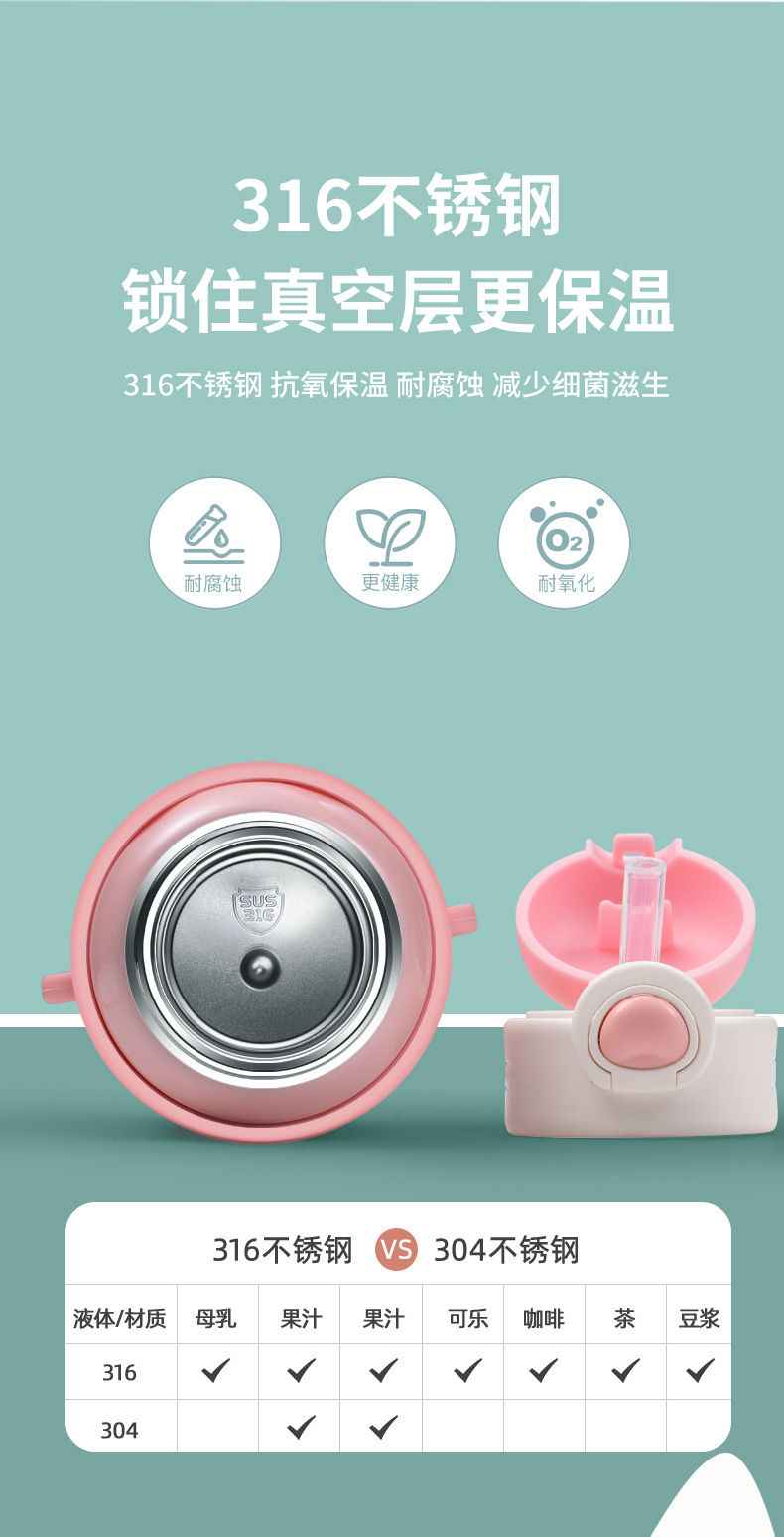 만화 더블 뚜껑 어린이 주전자 316 스테인레스 스틸 더블 레이어 튀는 보온병 컵 대용량 학생 휴대용 밀짚 컵