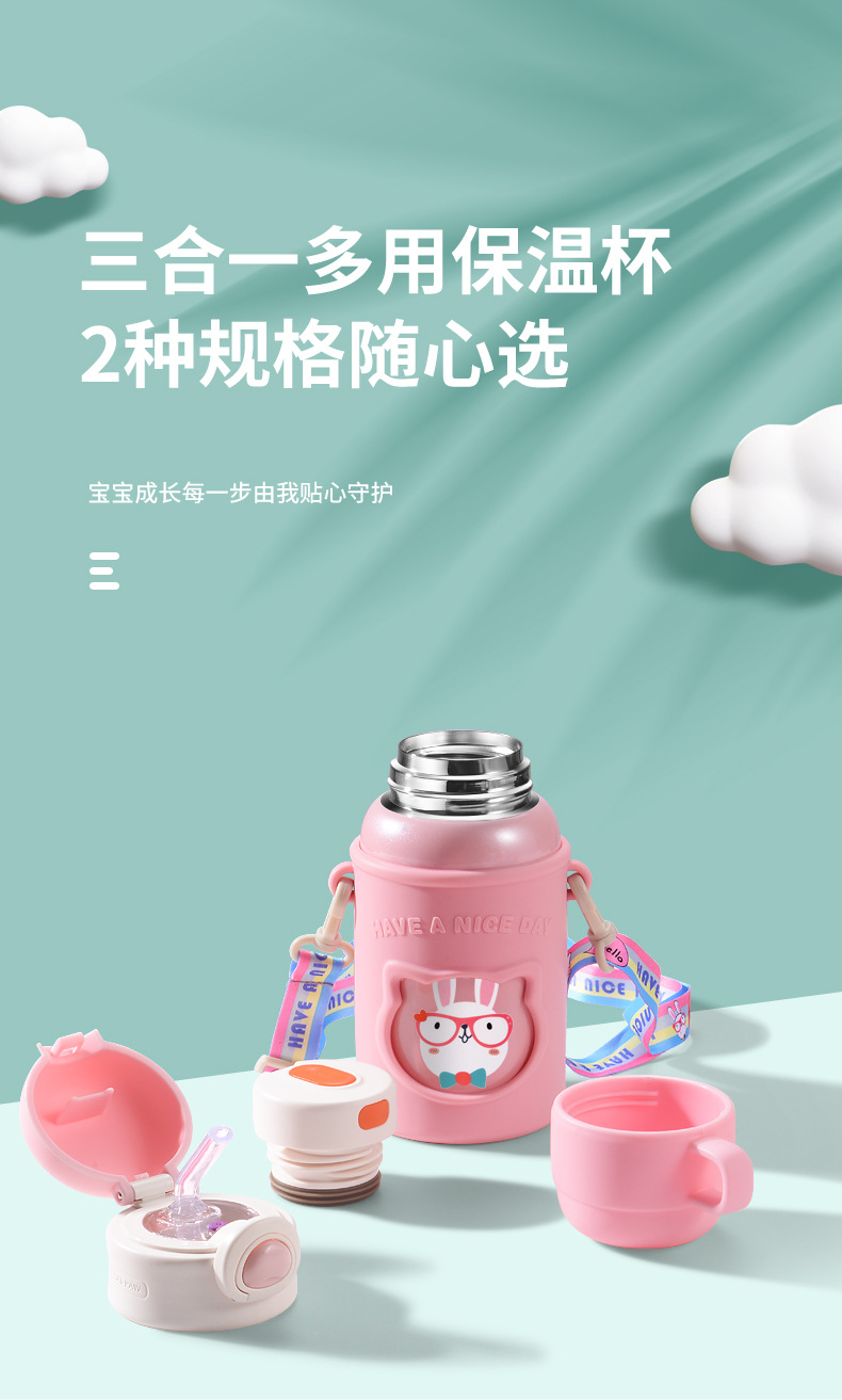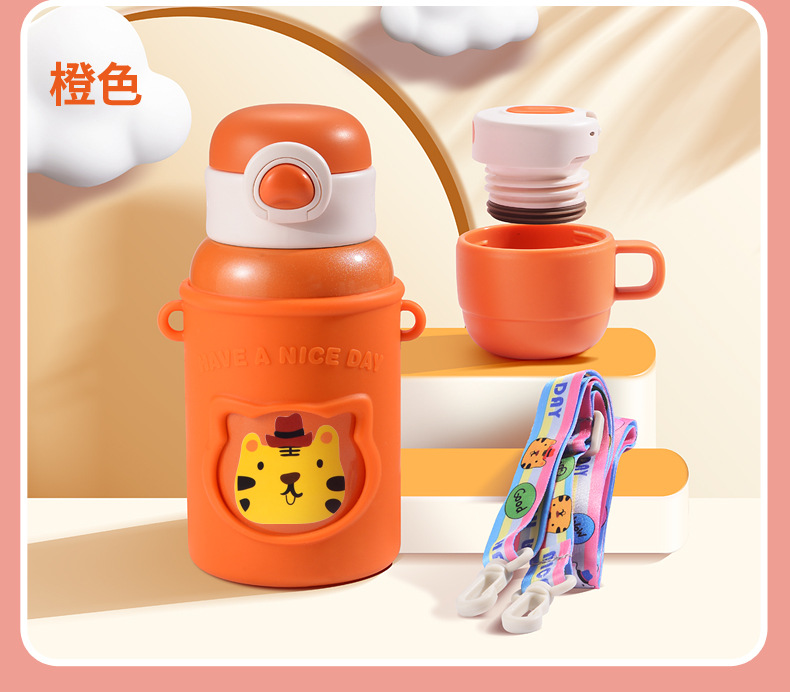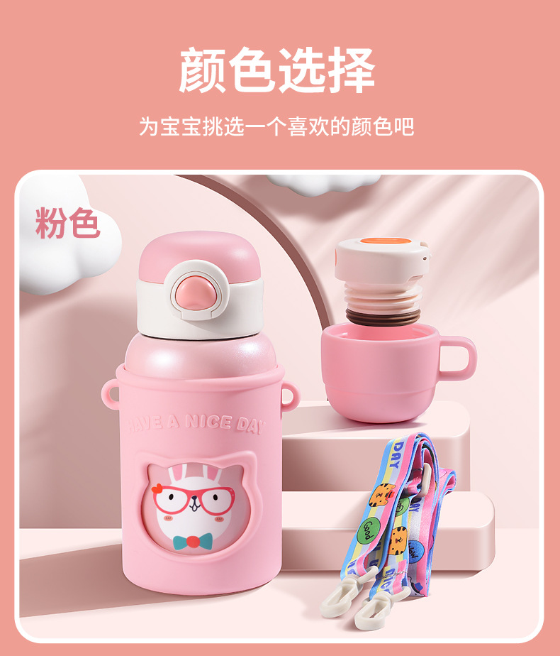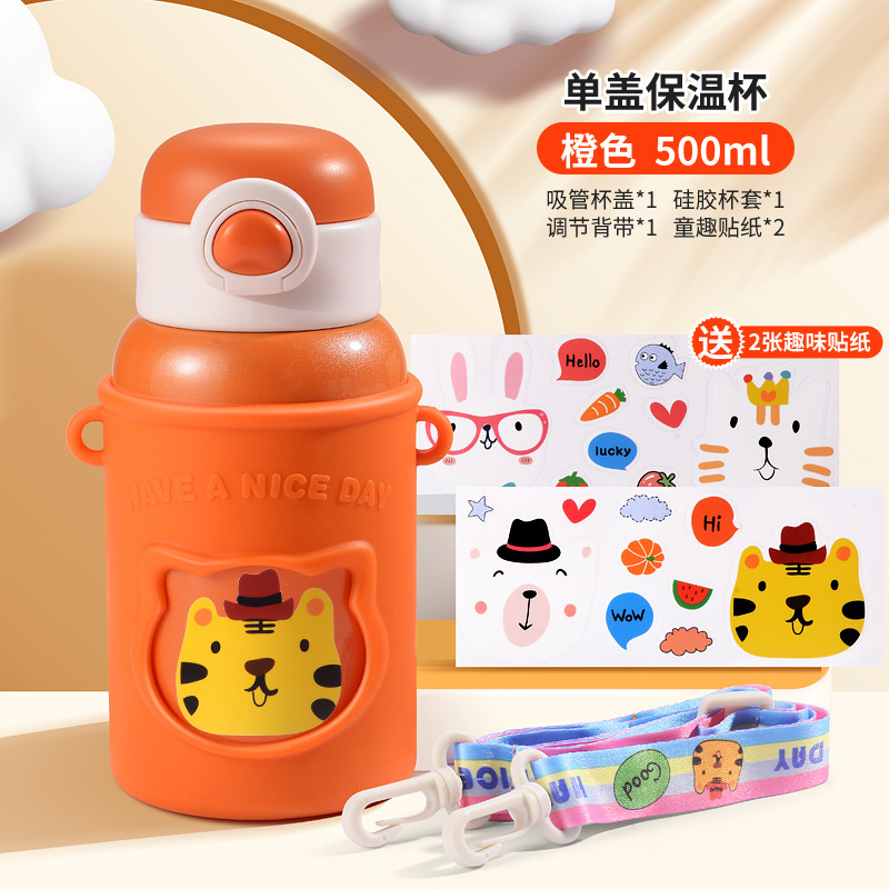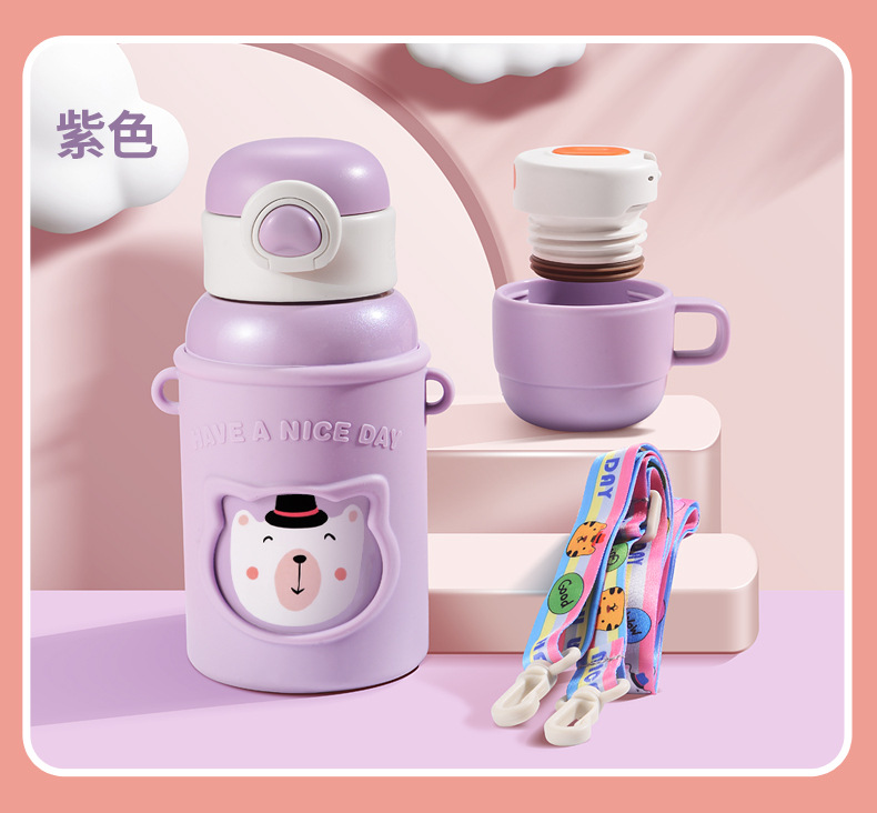 만화 더블 뚜껑 어린이 주전자 316 스테인레스 스틸 더블 레이어 튀는 보온병 컵 대용량 학생 휴대용 밀짚 컵